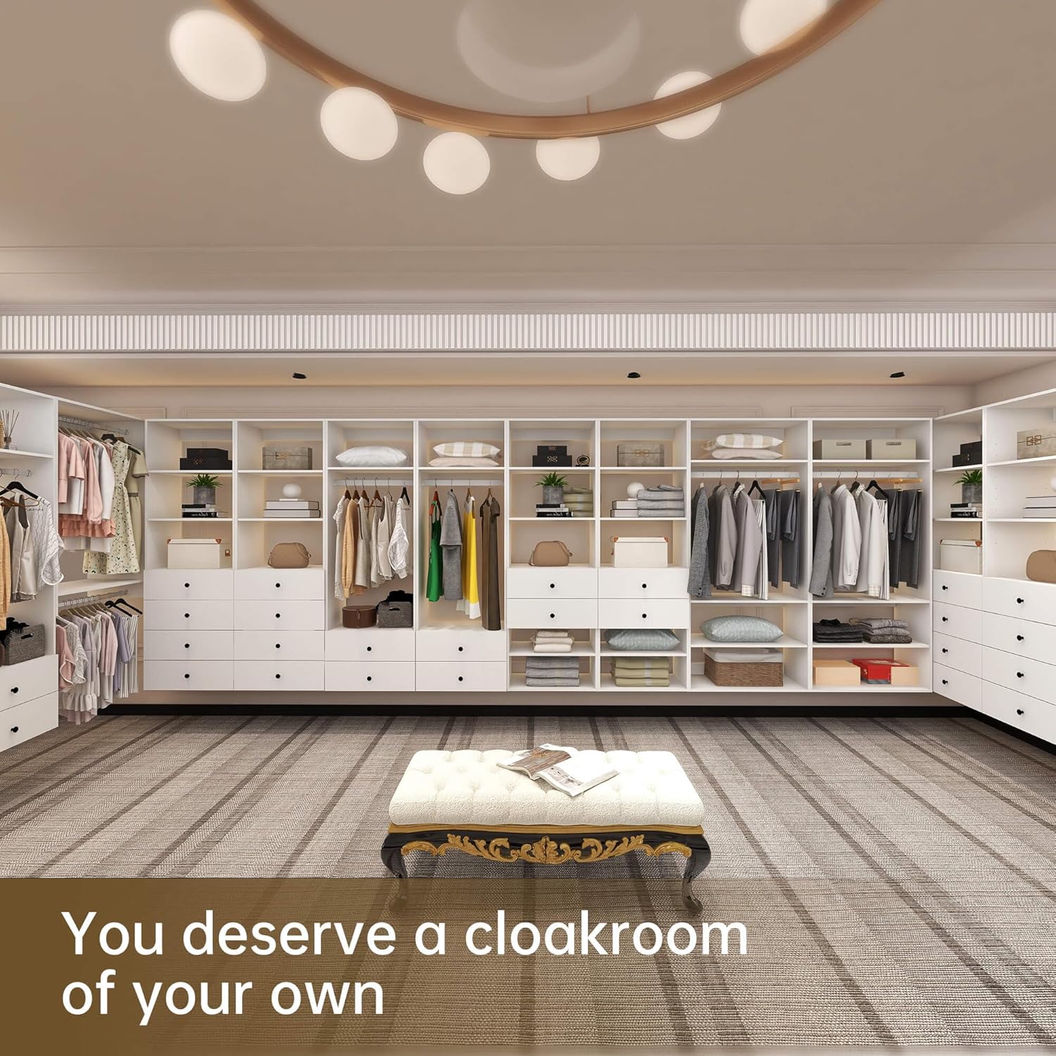 [Durability] – The walk in closet organizers and storage is constructed from high-quality wood, providing a reliable storage space for everything from luxury fashion and cherished keepsakes to everyday clothing. You won’t have to worry about damage of modular closet systems due to heavy loads, ensuring peace of mind and added convenience in your home.