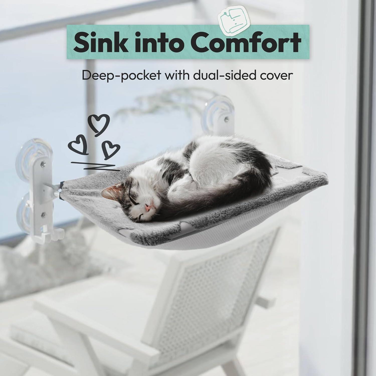 STRONG SUCTION CUPS: With 4 powerful suction cups, this cat window hammock supports up to 44 pounds—plenty sturdy for large cats. The non-slip silicone sticks tight to glass, keeping the cat window perch stable and safe