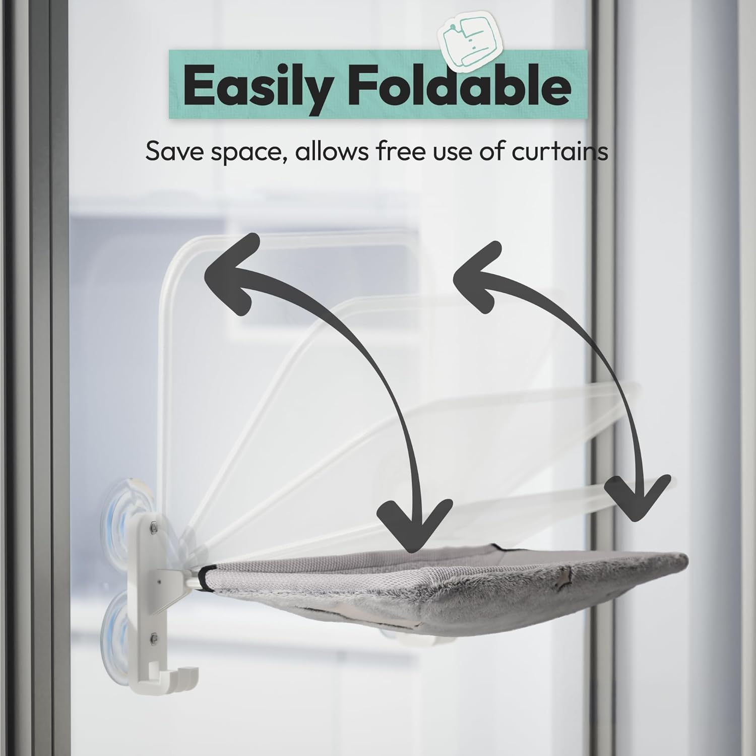 FOLDABLE SPACE-SAVING: This cat hammock for windows folds up easily when not in use, so it won’t get in the way of curtains or your windowsill—great for small apartments. Unfold it with a quick click, and it turns into a cozy window cat bed in 3 seconds