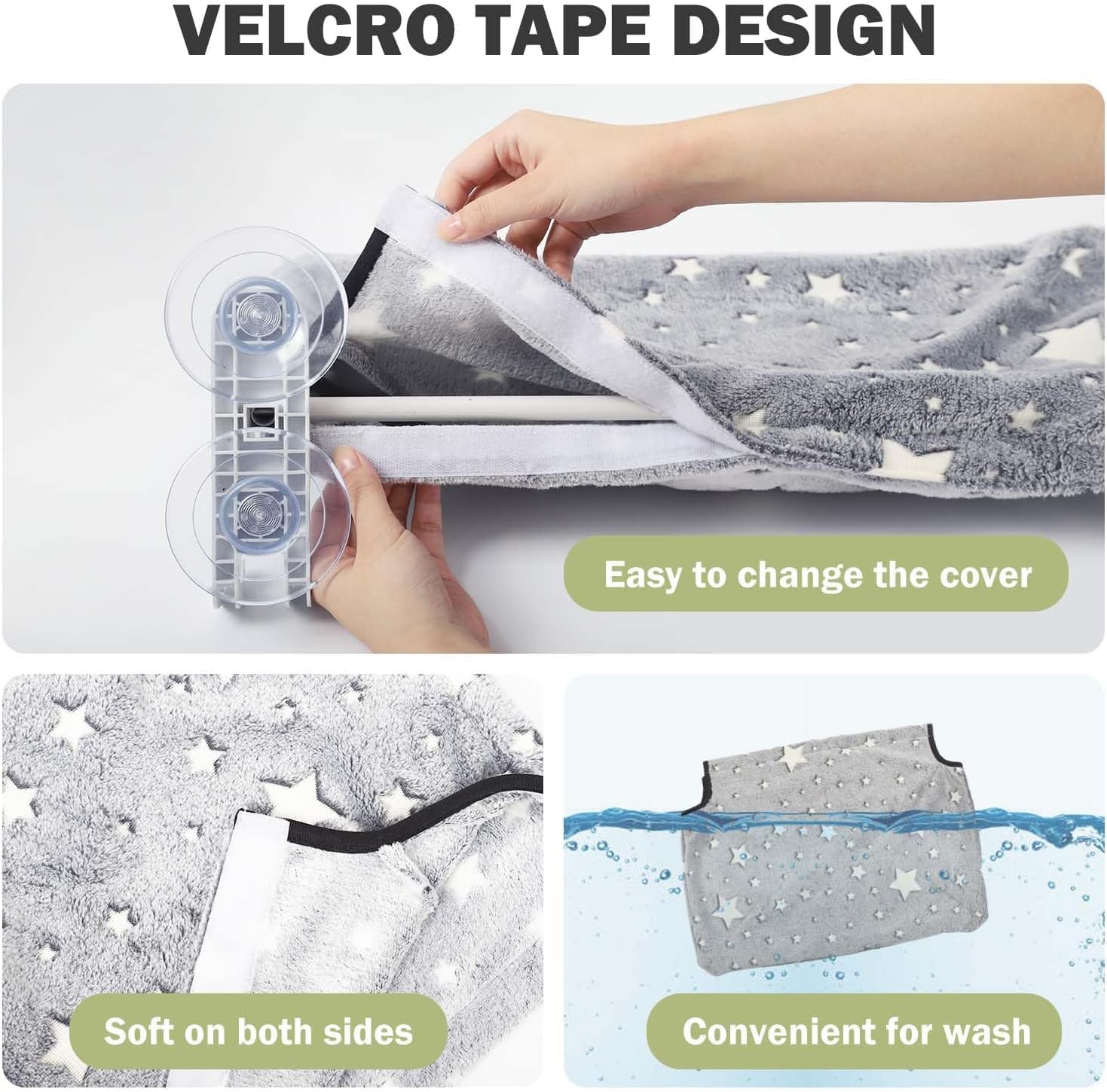 GLOW-IN-THE-DARK FABRIC: The cat window hammock’s fabric glows softly at night, making it easy to check on your cat and creating a cozy, secure spot. It’s soft, gentle on paws, and scratch-resistant—perfect for cats who love to knead or sharpen claws