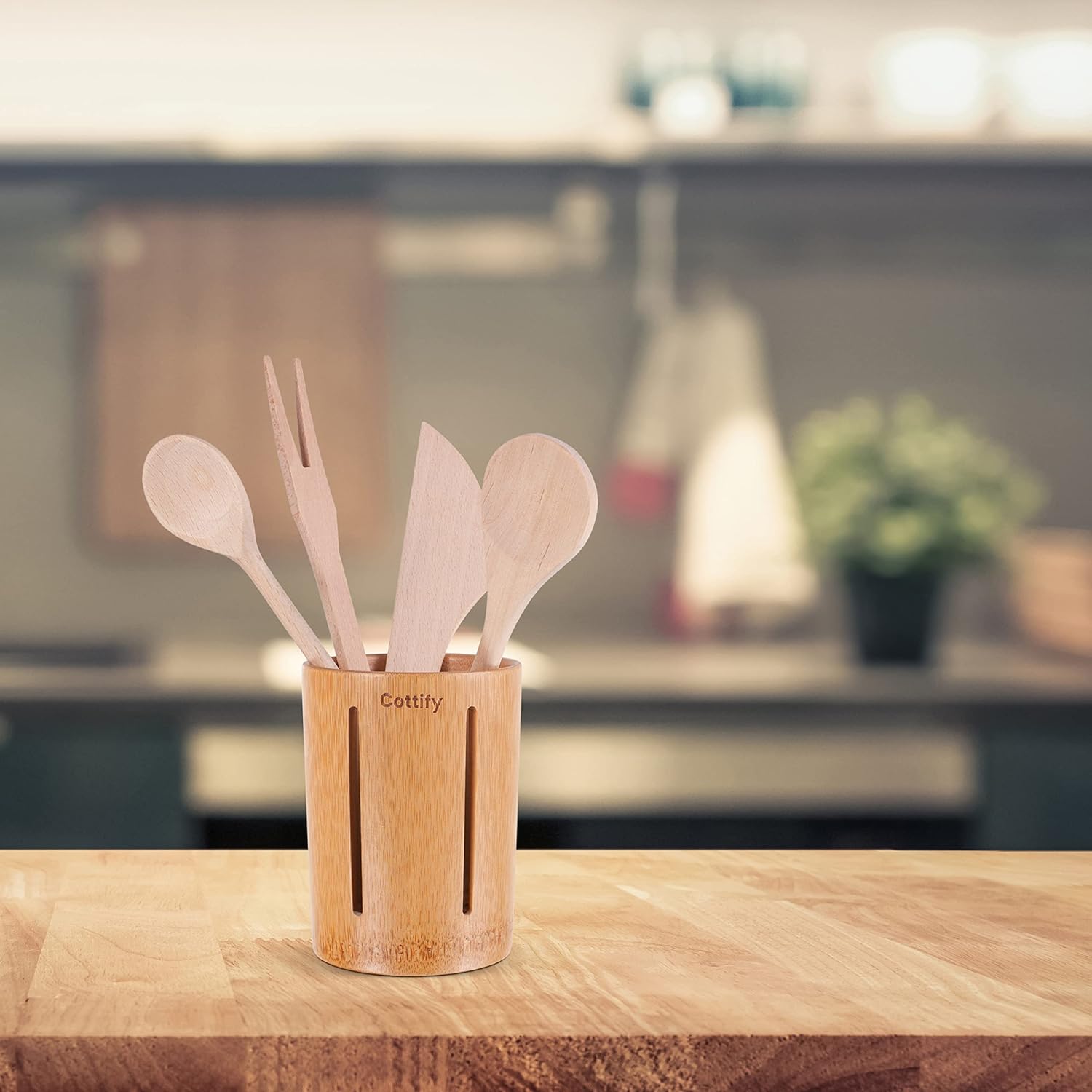The Cottify Bamboo Toothbrush Holder was designed to prolong the lifespan of your bamboo bathroom accessories and also to shine in your bathroom and kitchen by its original and subtle custom design. This Bamboo Holder itself looks marvelous in any bathroom, kitchen, office or kid’s room. Whether used to hold toothbrush, pencils, kitchen utensils, make-up accessories or art brushes.