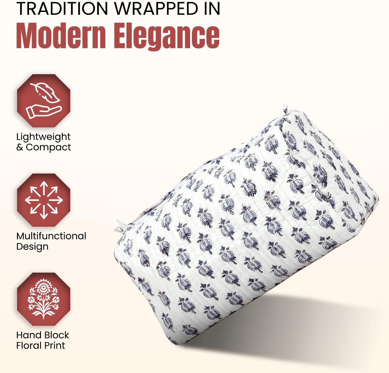 Be the first to review “Cotton Hand Block Floral Print Toiletry Bag For Women Make Up Cosmetic Bag Jewelry Organizer Kit Storage Case Travel Accessories Essential Toiletries Purse Pouch (White – Small Medium Large, Set of 3)”