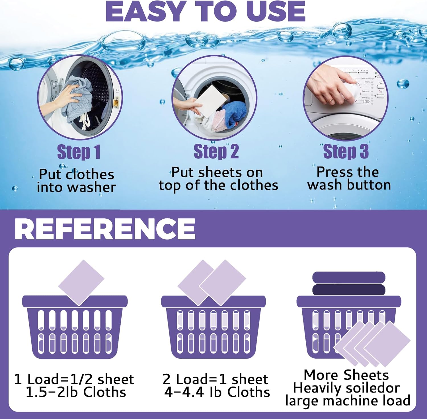 Powerful Clean: Laundry detergent sheets are a convenient and environmentally friendly alternative to traditional liquid or powder laundry detergents, with more powerful cleaning power.The low foam characteristic of laundry sheets makes them highly suitable for efficient washing and easy rinsing, eliminating the need for additional rinse cycles. More water-efficient!