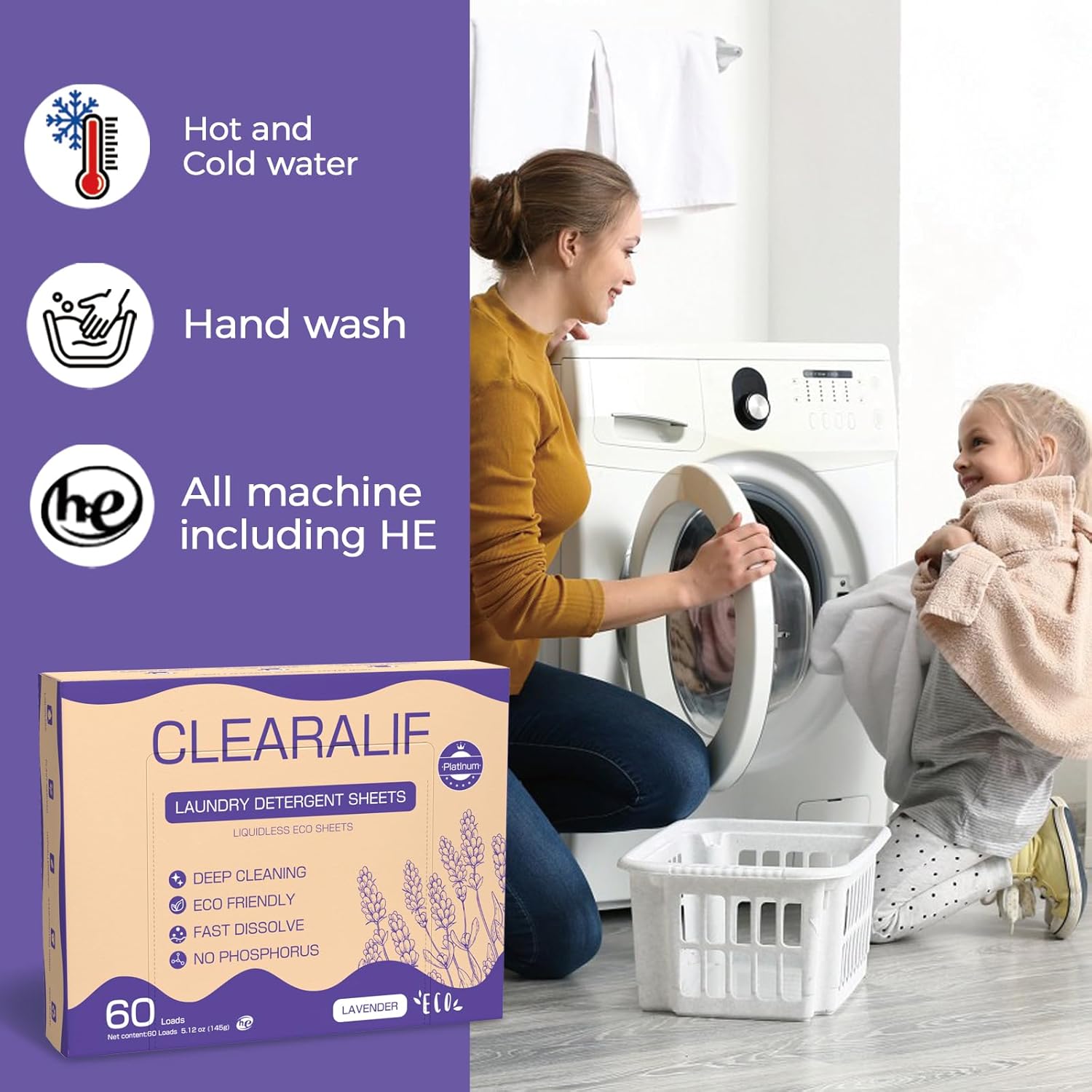Portability:Laundry detergent sheets are thin, paper-like sheets. The packaging is so lightweight and compact, making them a great choice for travelers or people with limited storage. You can easily carry them to the in your luggage or laundromat, while traveling, or when visiting friends without adding much weight or taking up space.(Up to 60 Loads)