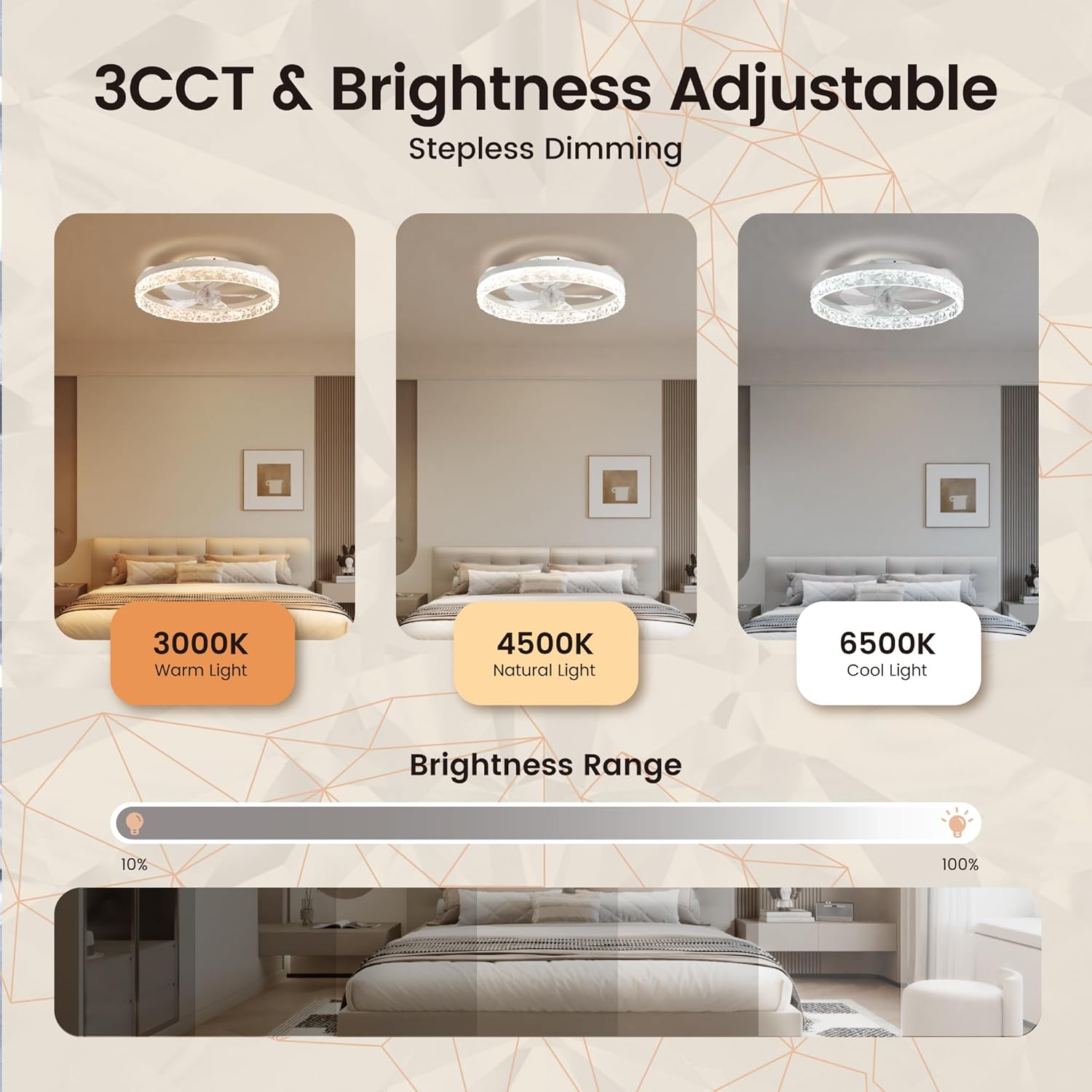 CubiCubi Ceiling Fans with Lights, 20 Inch Crystal Style Low Profile Ceiling Fans with Lights and Remote Control, APP, Ultra Quiet Modern Ceiling Fan with 3CCT and 6 Wind Speeds, LED Fans for Bedroom