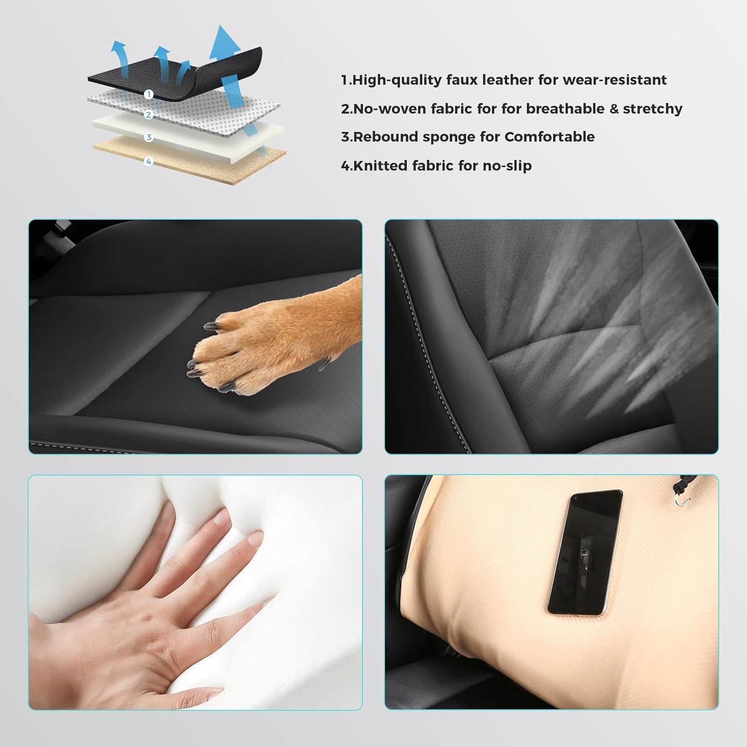 【Premium Car Seat Protection】: These waterproof car seat covers feature a four-layer construction, providing superior protection against spilled coffee, pet scratches, and the hot sun. They are easy to clean with just a damp cloth, ensuring your car seat covers last for a long time.