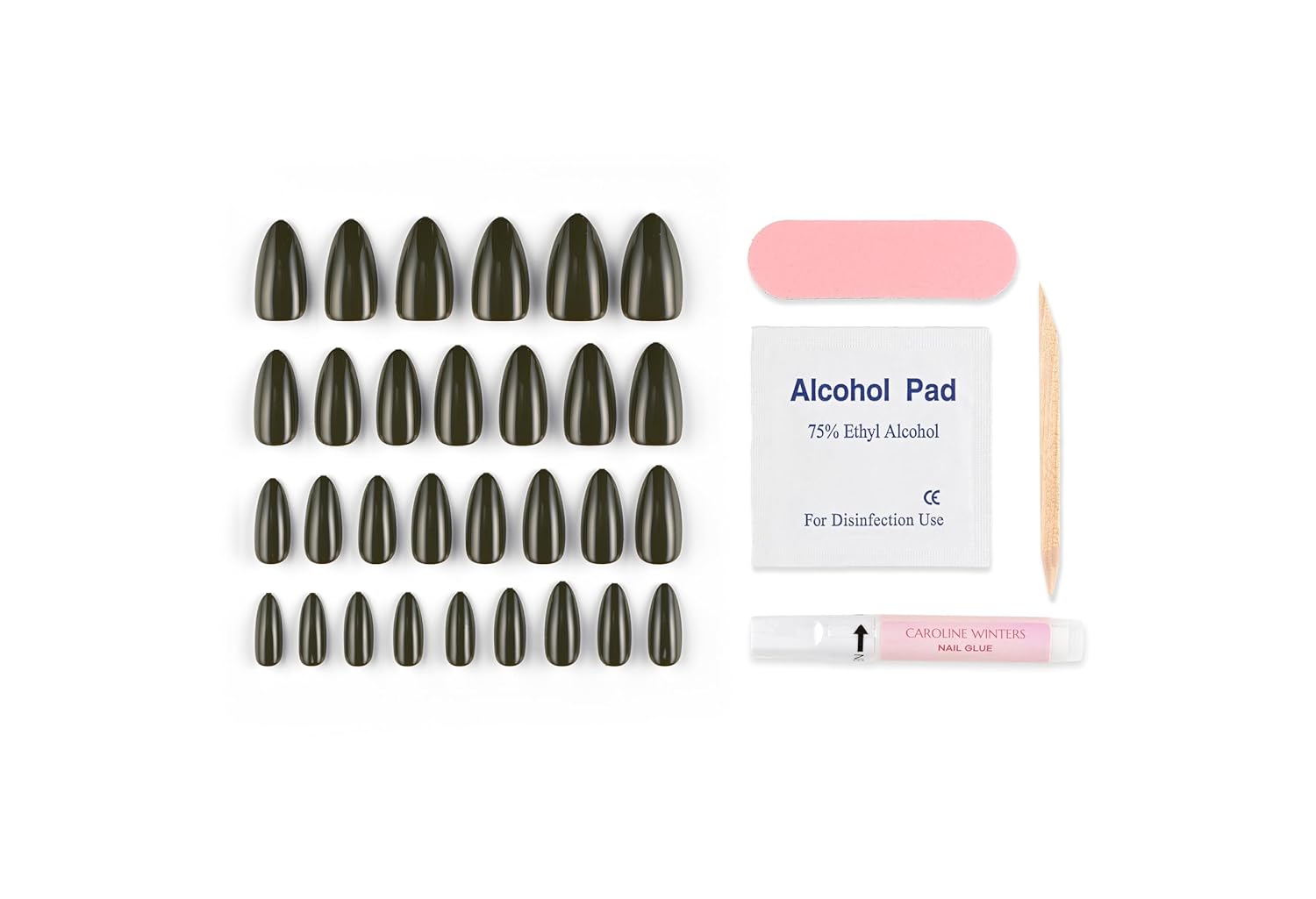 All-In-One Nail Kit Included – Comes with nail glue, nail wiper, cuticle stick, and nail file—everything you need for application and touch-ups.