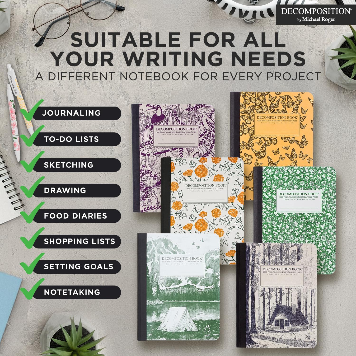 Decomposition Books are the the perfect size for daily notetaking at school or work and are suitable for sketching, drawing, journaling, recipe-writing and more! They are compact enough to fit in a backpack but large enough to accommodate all your writing needs. Decomposition Books make an ideal choice for students, professionals and hobbyists alike.
