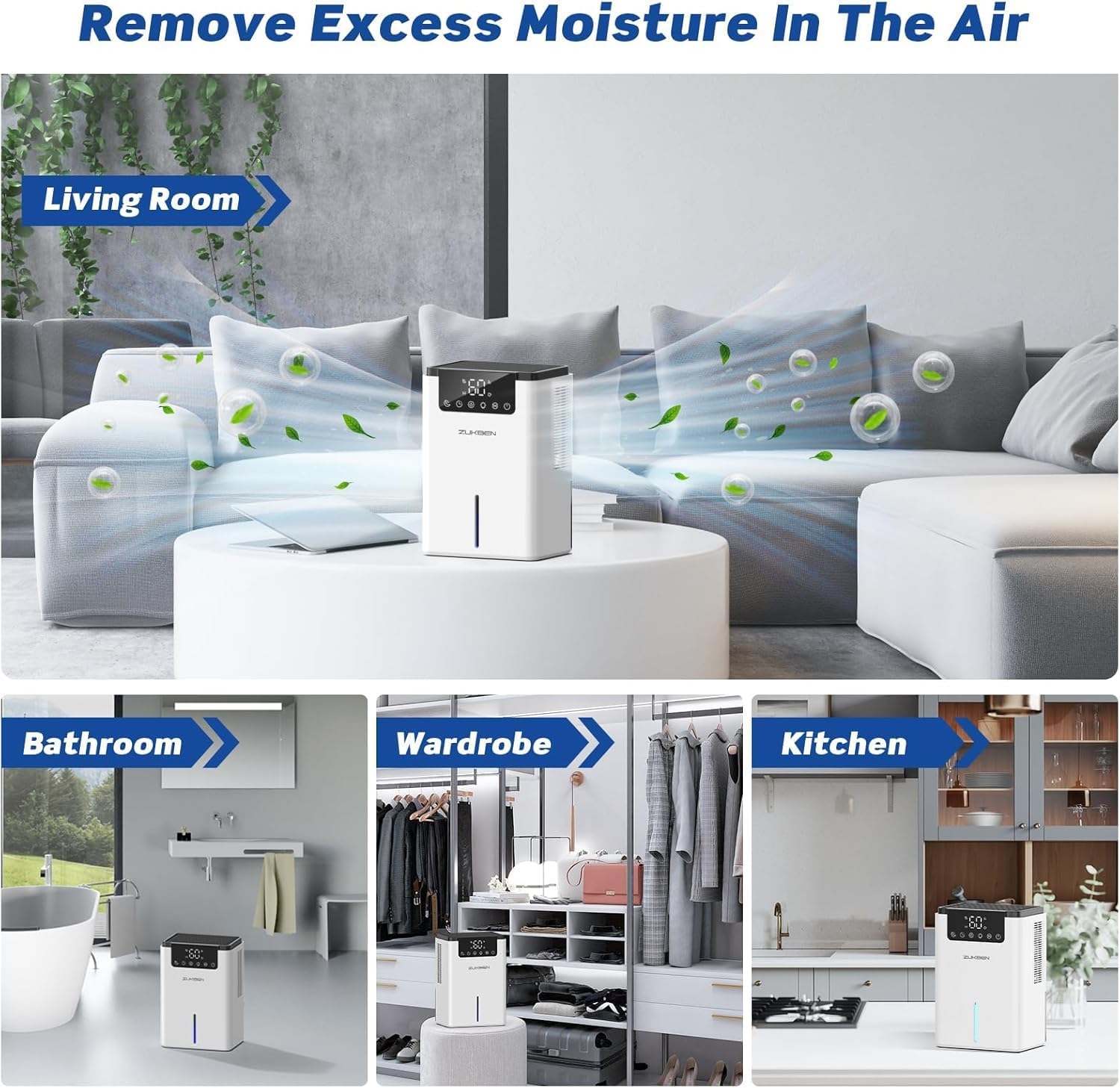 ⏰ ENERGY SAVING: Small dehumidifier is equipped with a customizable timer (2H/4H/6H/8H/10H/12H), this upgraded dehumidifiers for home works intelligently to maintain ideal humidity while saving energy—whether you’re out or asleep. Dehumidifer for home make you enjoy a comfortably dry space with peace of mind, without high energy consumption