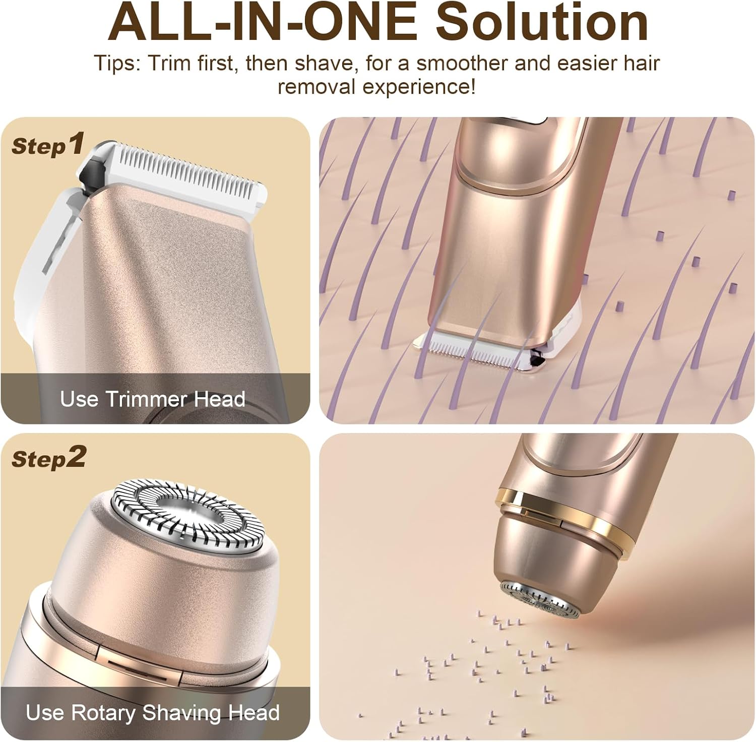 IPX6 Waterproof Easy-to-Cleaning: Experience IPX6 waterproof electric shaver for women both waterproof for Wet/Dry Use, Removable blades and washable trimmer heads, come with a cleaning brush make cleaning easier!