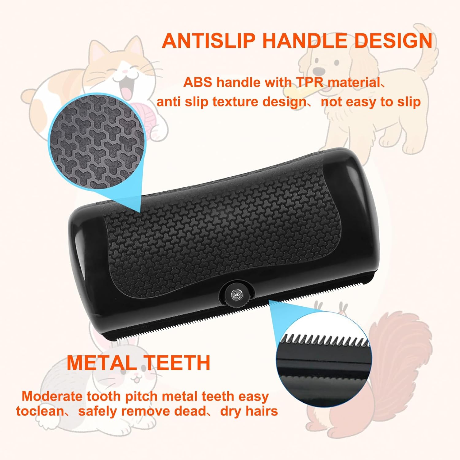 【Ergonomic, Comfortable Grip】 Featuring a non-slip handle, this pet grooming comb provides a comfortable grip, ensuring stable and precise brushing motions. Whether you’re grooming for long periods or doing a quick touch-up, both you and your pet will enjoy a smooth and easy grooming experience.