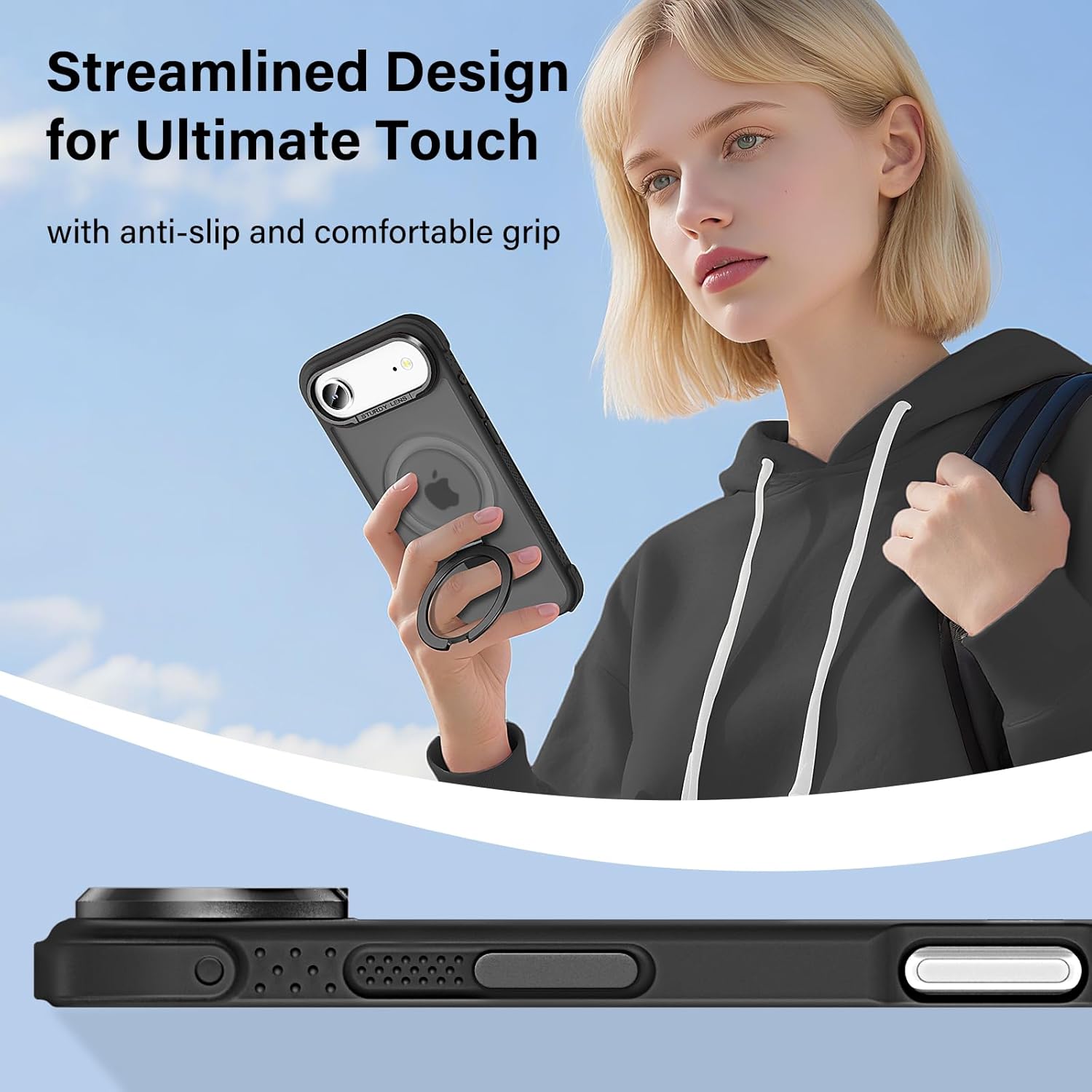 [Anti-Slip Side Grip for Secure Handling] Designed with textured, non-slip silicone strips along both sides, our iPhone Air Plus case with magnetic stand enhances your grip—no more fumbling or accidental drops, even with sweaty hands. Perfect for active use or on-the-go lifestyles.