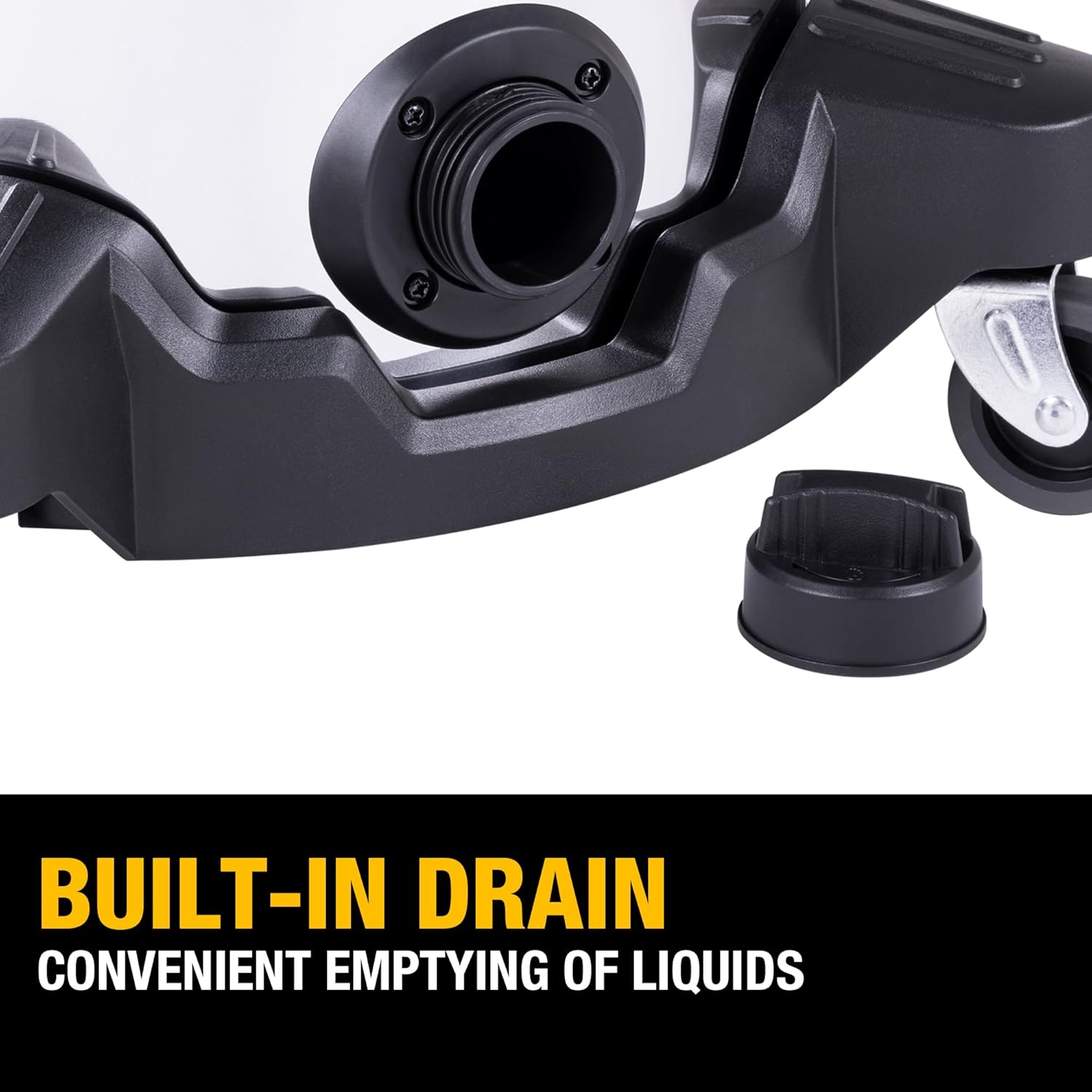 【BLOWER FUNCTION & OVERSIZED DRAIN】Rear blowing port on this wet dry vac allows for quick cleaning of leaves and grass clippings in your garage and outdoors. Built-in oversized drain allows for convenient emptying of liquids