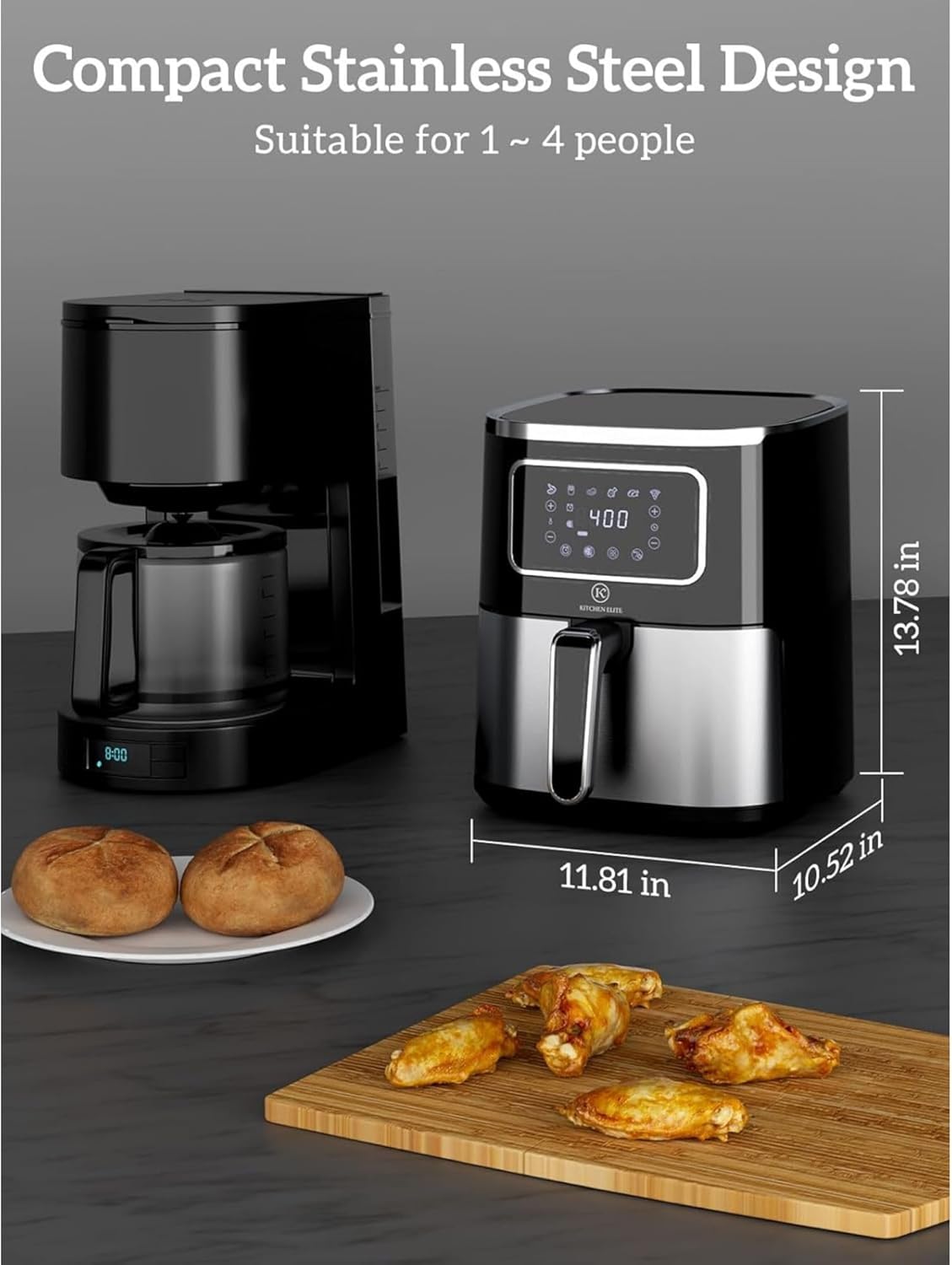 Versatile Kitchen Appliance: Generous 5.28-quart capacity fits fries, snacks, chicken wings, and more for single-serving meals, quick bites, or on-the-go cooking needs