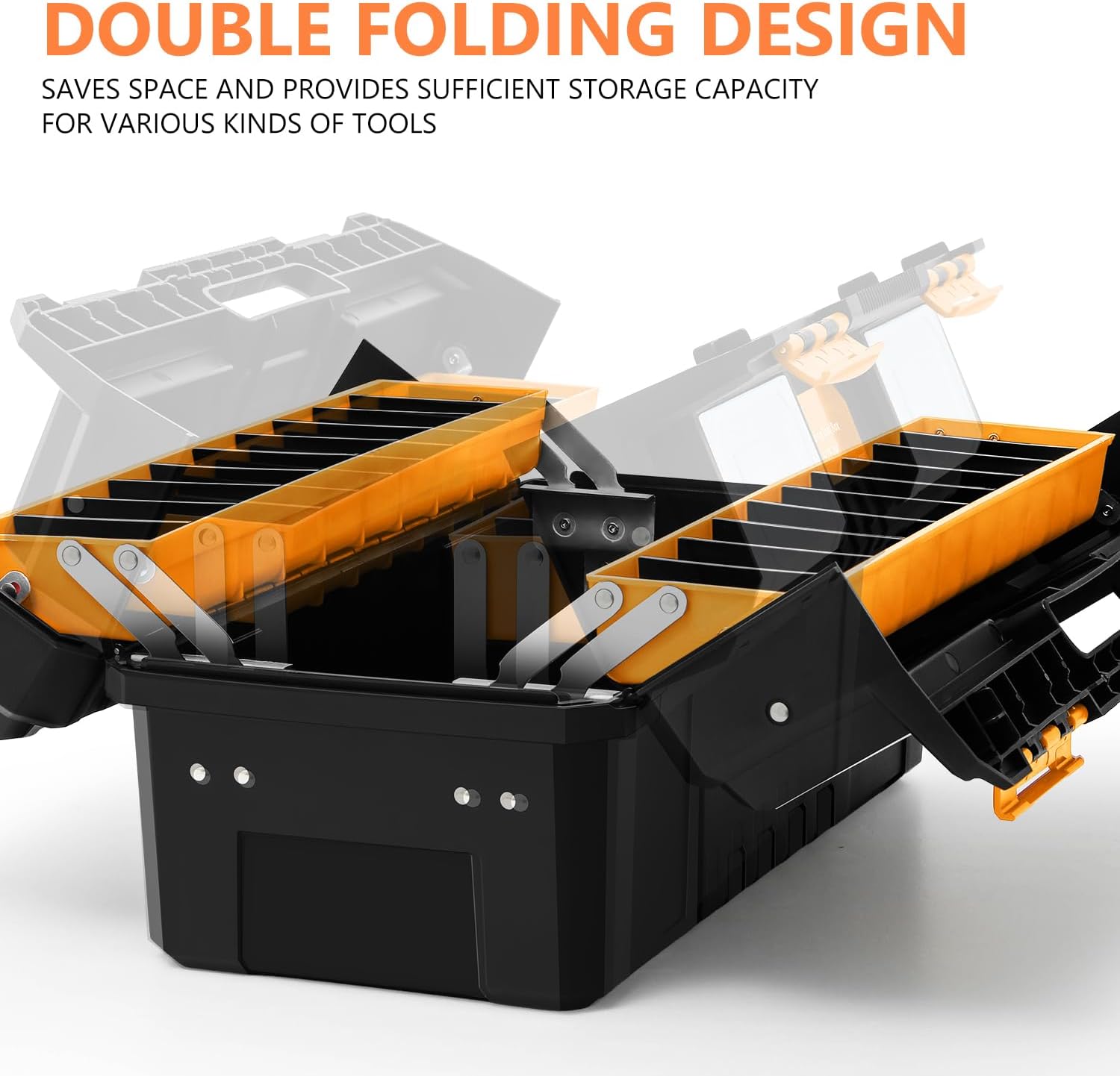 DNA MOTORING 2-Layer Lockable Tool Box Plastic Portable Storage Folding Toolbox Tray Divider Tool Organizers, W/Handle, Orange/Black, TOOLS-00503