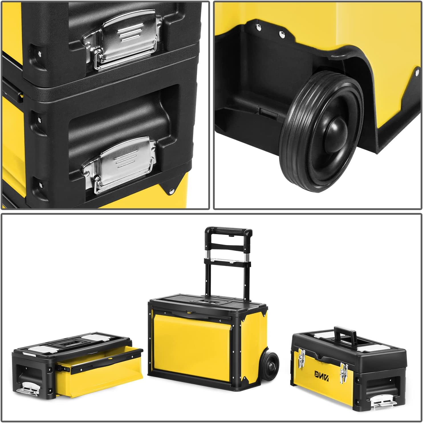 DNA MOTORING TOOLS-00223 19.5″ x 28.5″ x 12″ 3-Tier Stackable Separate Hand Case Tool Boxes Trolley, 3-in-1 Storage Compartments,Yellow