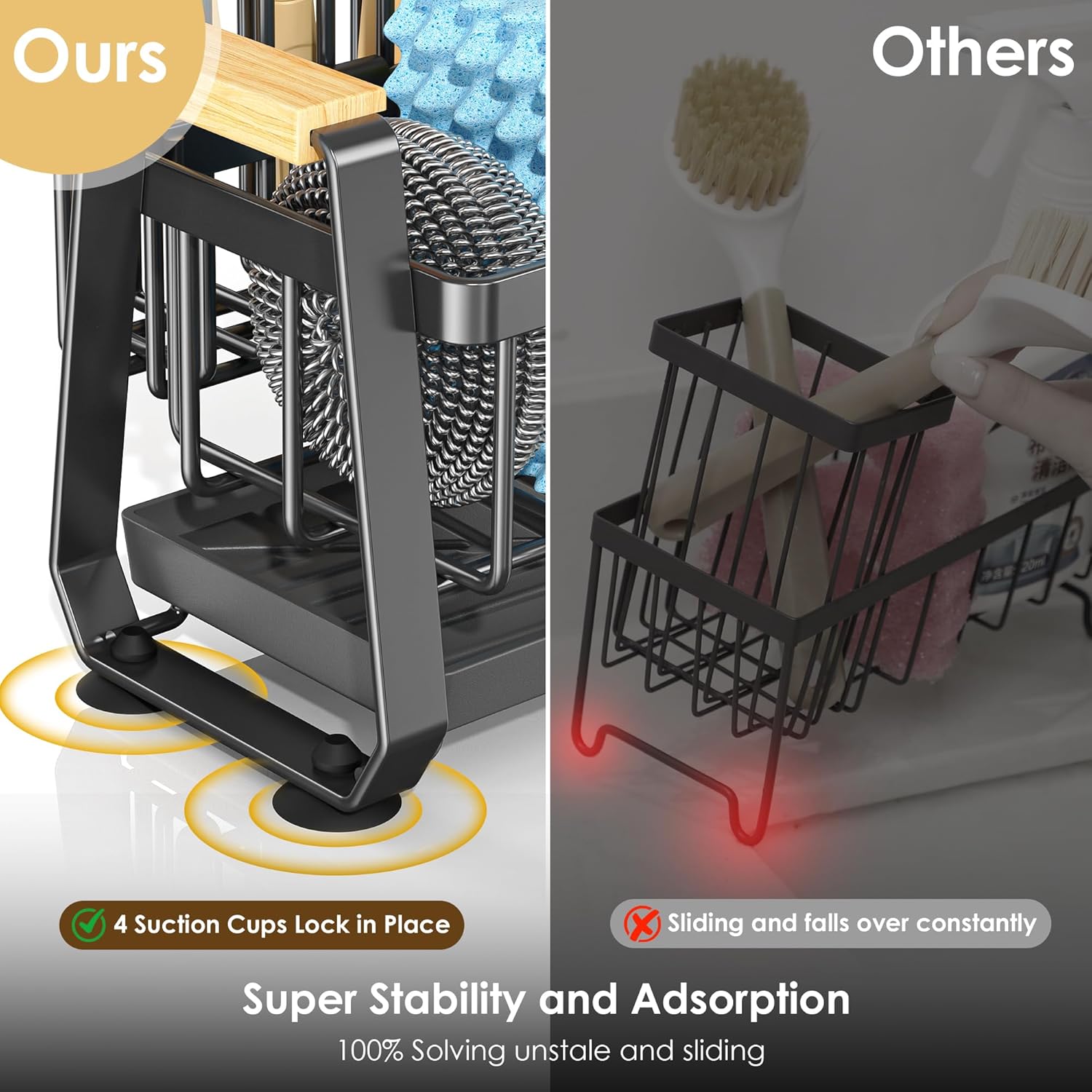 【Rapid Self-Draining】The sink caddy kitchen sink organizer’s patented V-Drain Channel and extra-long 3.15 in spout directs every drop straight to the sink. Keeps your kitchen sponge holder clean and dry. An Ideal kitchen organizers and storage for tidy countertops.