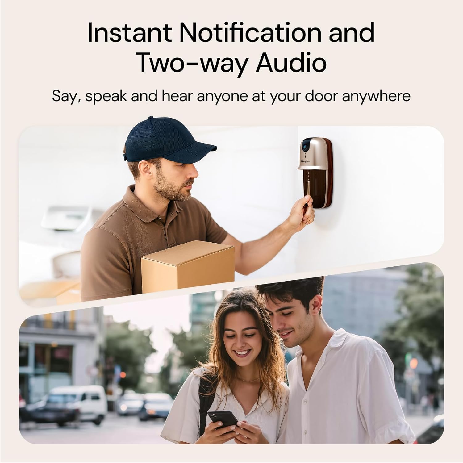 [Precise AI Recognition and Motion Detection] wireless doorbell Identifies family members, couriers, and others, and sends personalized notifications (Records clips up to 15 seconds each) with content smartly categorized based on visitor type and event nature(90-days free)