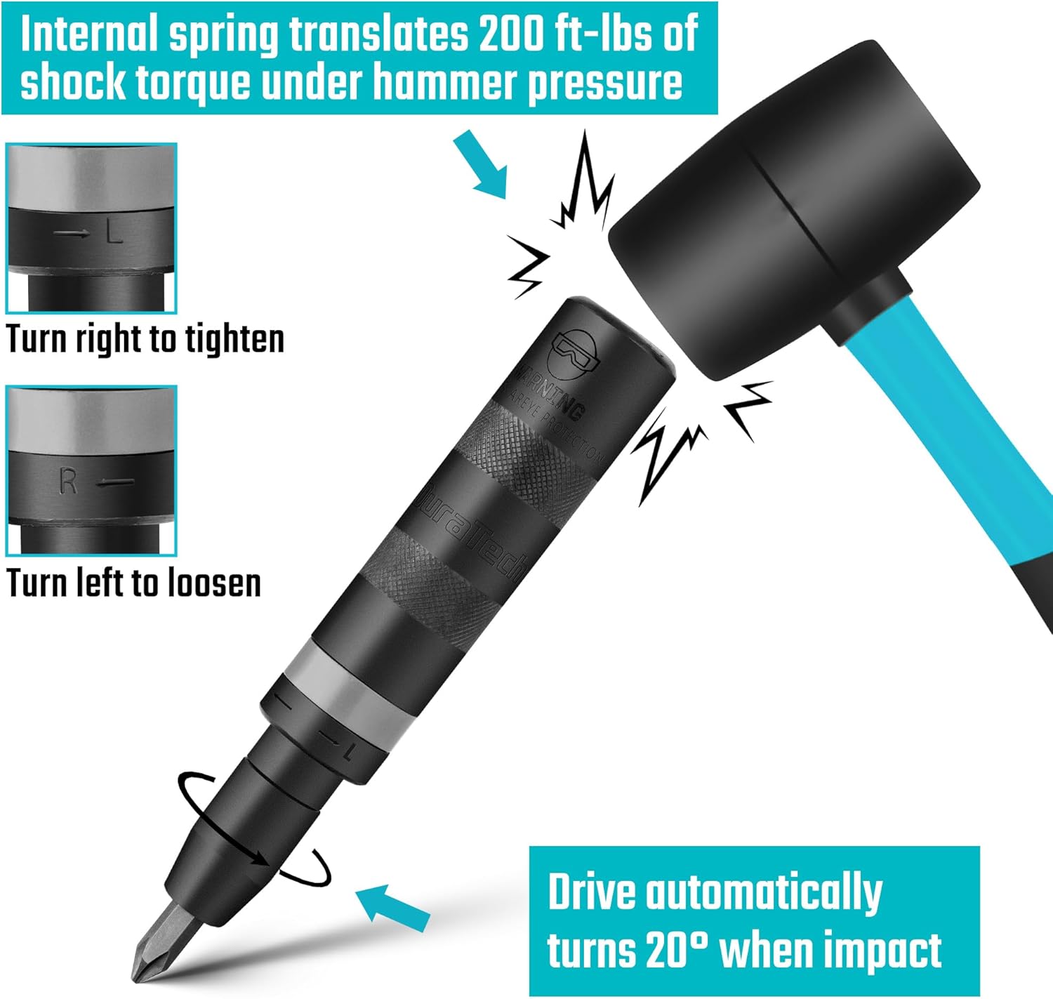 DURATECH 3/8 Inch Drive Manual Impact Driver, Reversible Hand Screwdriver Set, with S2 Steel Bits, 5-Piece, for Tighten/Rusted Fasteners, Organized in Storage Case