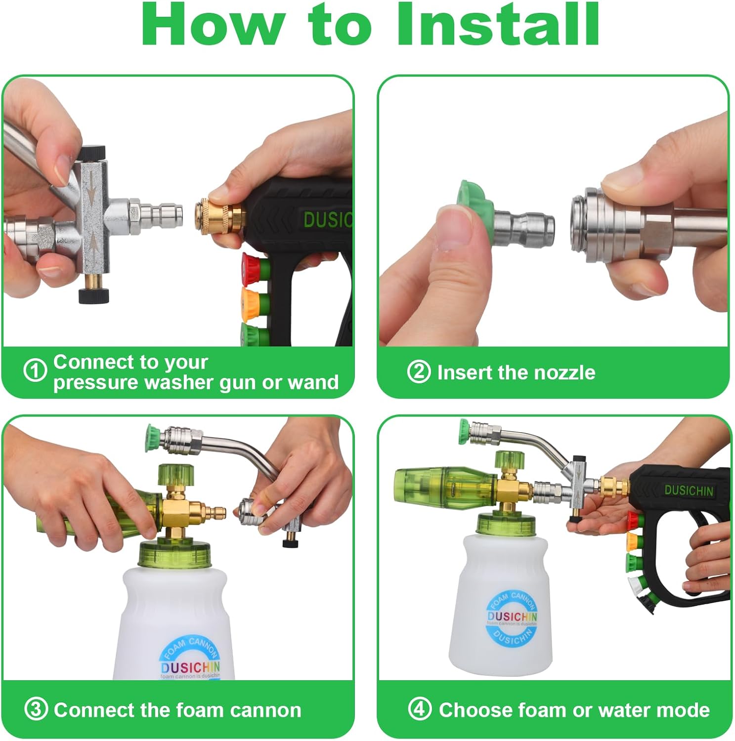 I picked up the DUSICHIN Short Pressure Washer Gun with integrated foam cannon to simplify my car washing routine, and overall, itâs been a great addition to my setup. The foam cannon produces a rich, even foam that’s perfect for thorough coverage, and the compact gun design makes handling and maneuvering easy and efficient. I really appreciated the quick-connect feature that allows for fast switching between soap and rinse modes â a smart touch that adds convenience. For the price, itâs a solid value and outstanding product. Highly recommended for casual car detailers looking for a powerful and versatile wash tool!