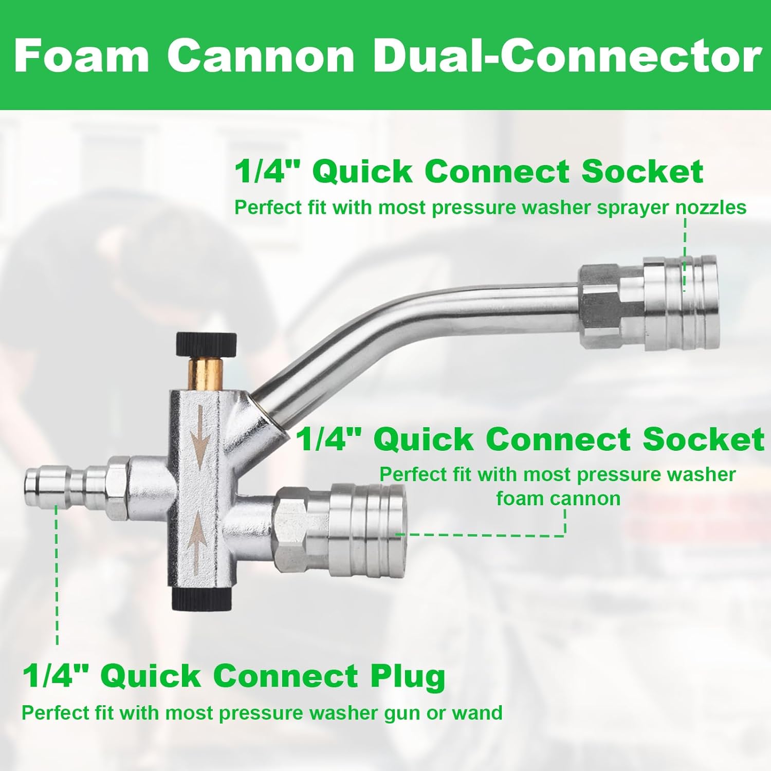 DUSICHIN Short Pressure Washer Gun Foam Cannon Nozzle Dual Connector Shift Valve, Car Wash Foam Cannon Kit 1/4 Inch Quick Connector, 5 Pressure Washer Nozzle Tips,Double Tip Attachment For Soap Cannon