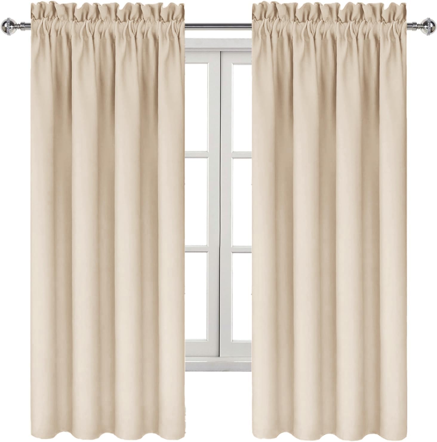 DWCN Beige Curtains for Bedroom Thermal Insulated Room Darkening Drapes for Living Room Rod Pocket Light Blocking Solid Window Treatment, W 42 x L 63 Inch, 2 Panels, Beige