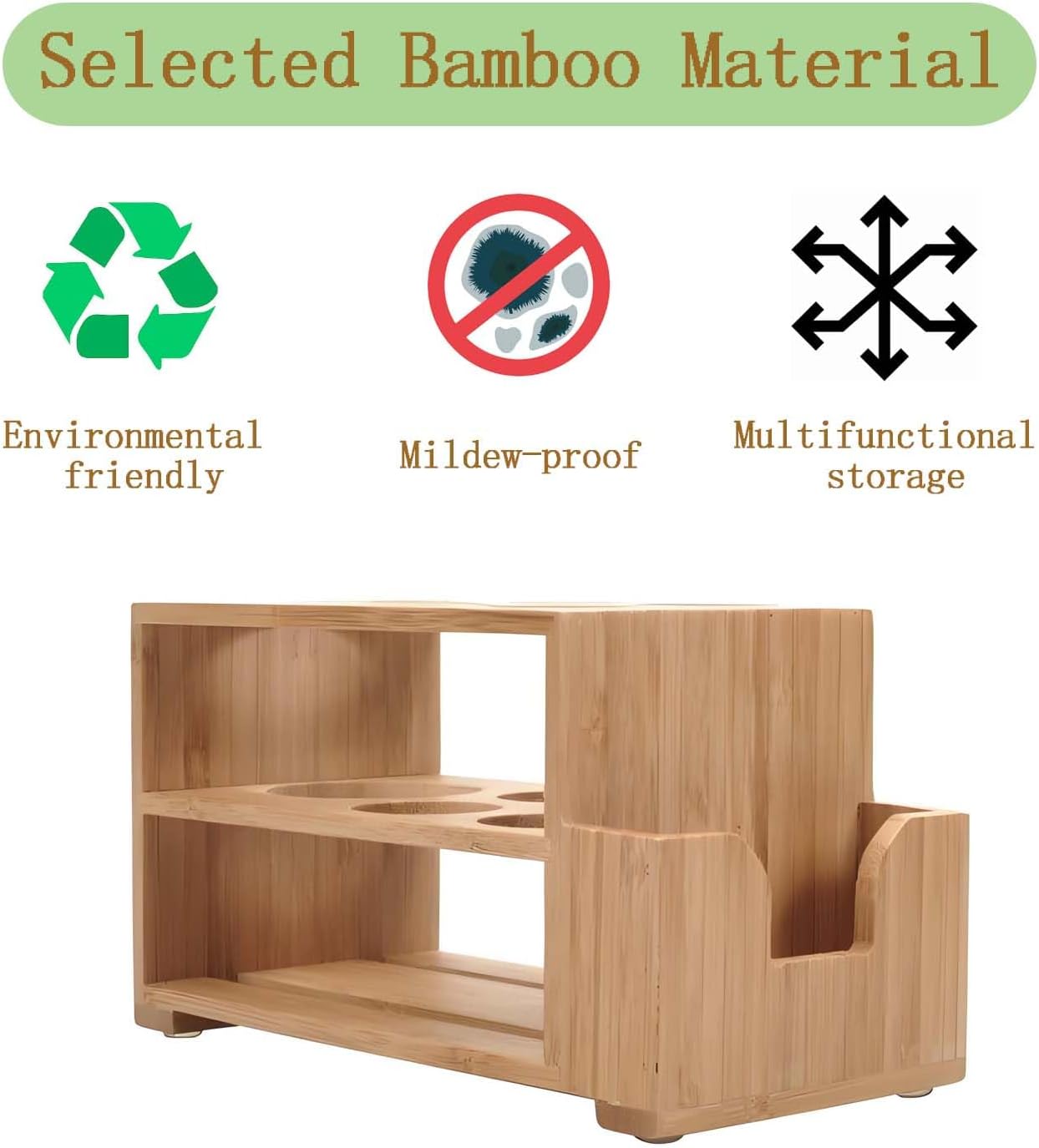 Eco-Friendly & Sustainable Bamboo: Crafted from 100% natural bamboo, this eco-friendly toothbrush holder is renewable, biodegradable, and a stylish alternative to plastic bathroom organizers, perfect for environmentally conscious homes.