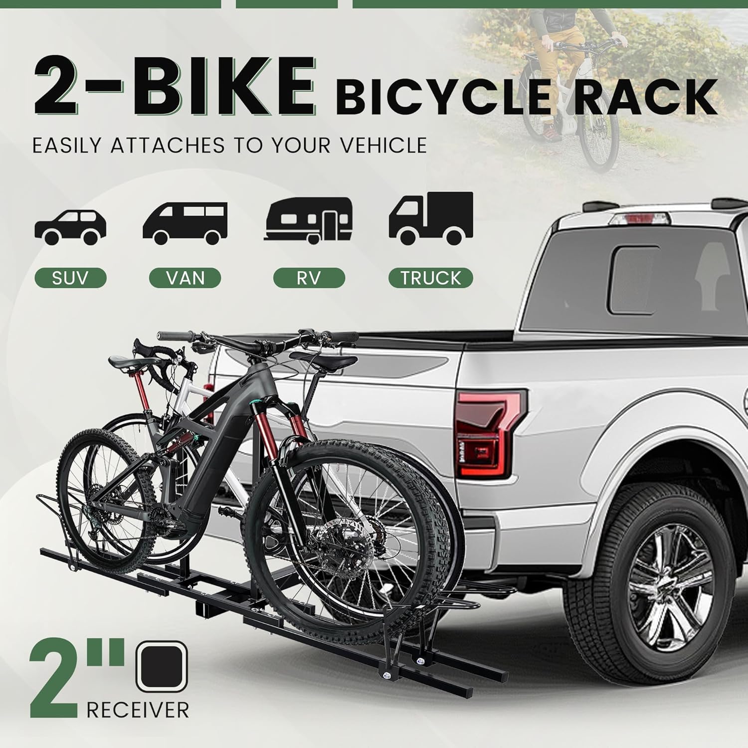 ECOTRIC Hitch Mount Bike Rack 2” Receiver Bicycle 2-Bike Rack for SUV Van Truck Car RV Minivans, 200 LBS Capacity Platform Style for Mountain Bike E-Bike Steel