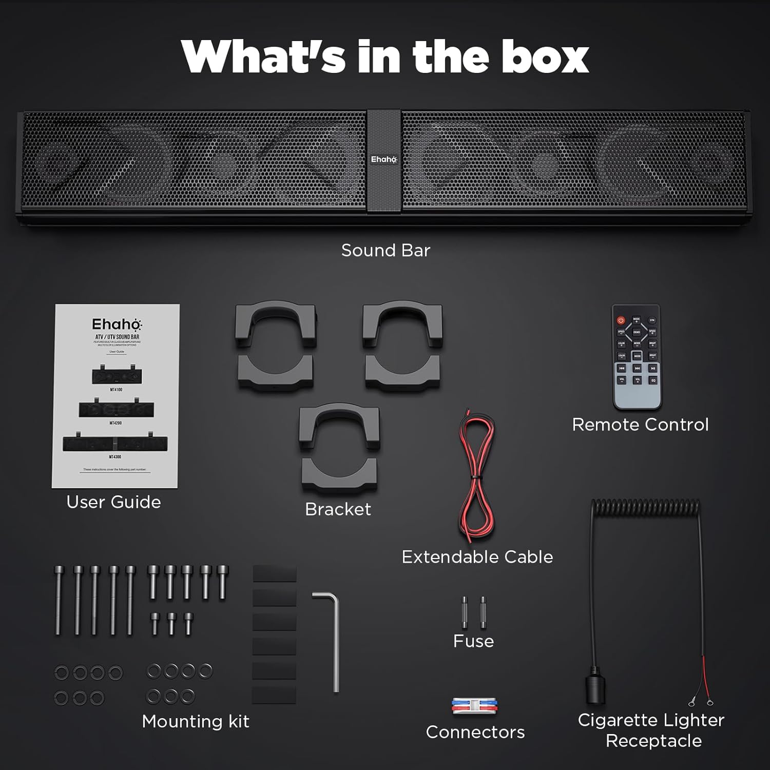 Strong & Waterproof Soundbar: Rugged ATV soundbar is IP66 Waterproof and dust resistant. Plus it’s heavy-duty housing, tough enough for riding in outdoors. No fears when using speakers in extreme weather
