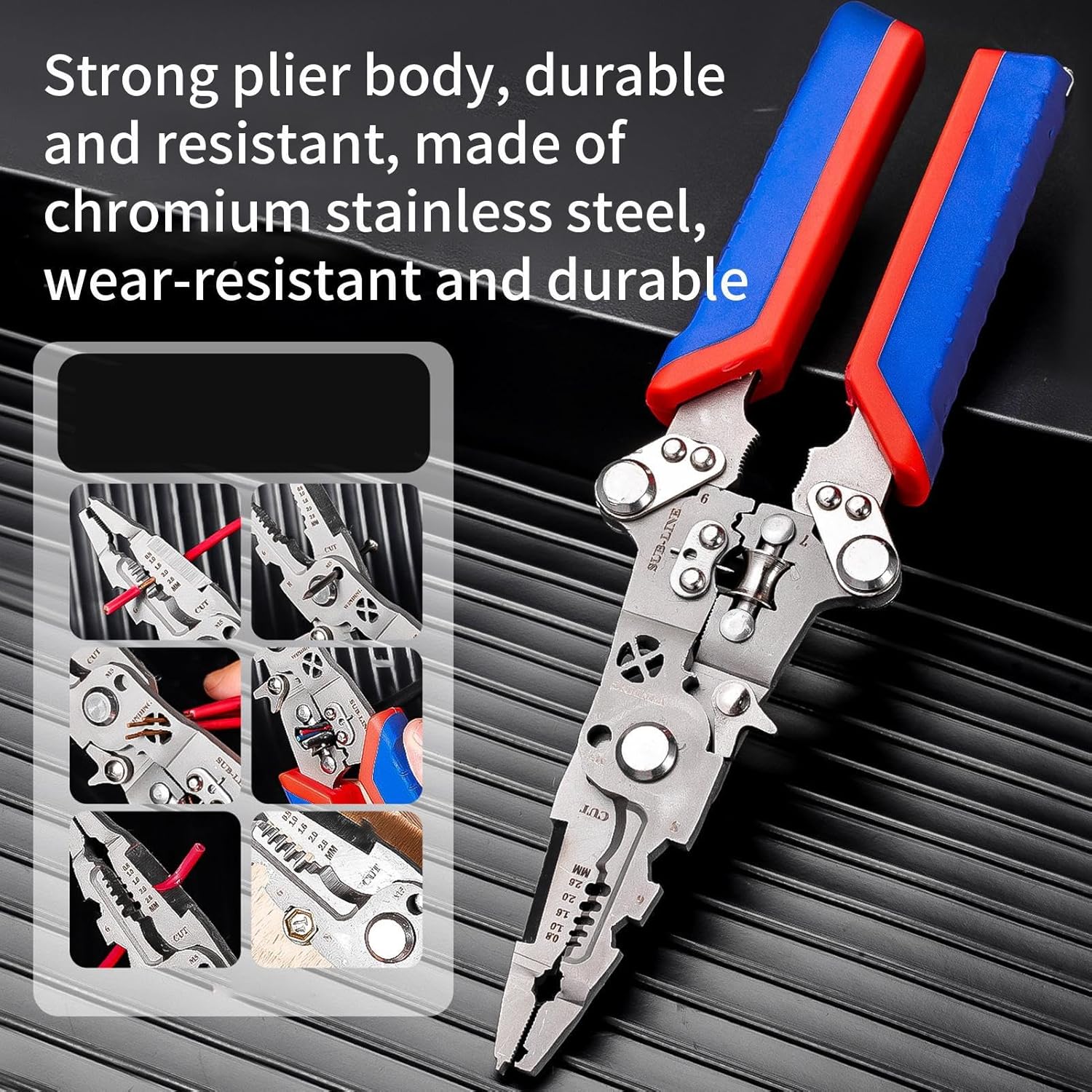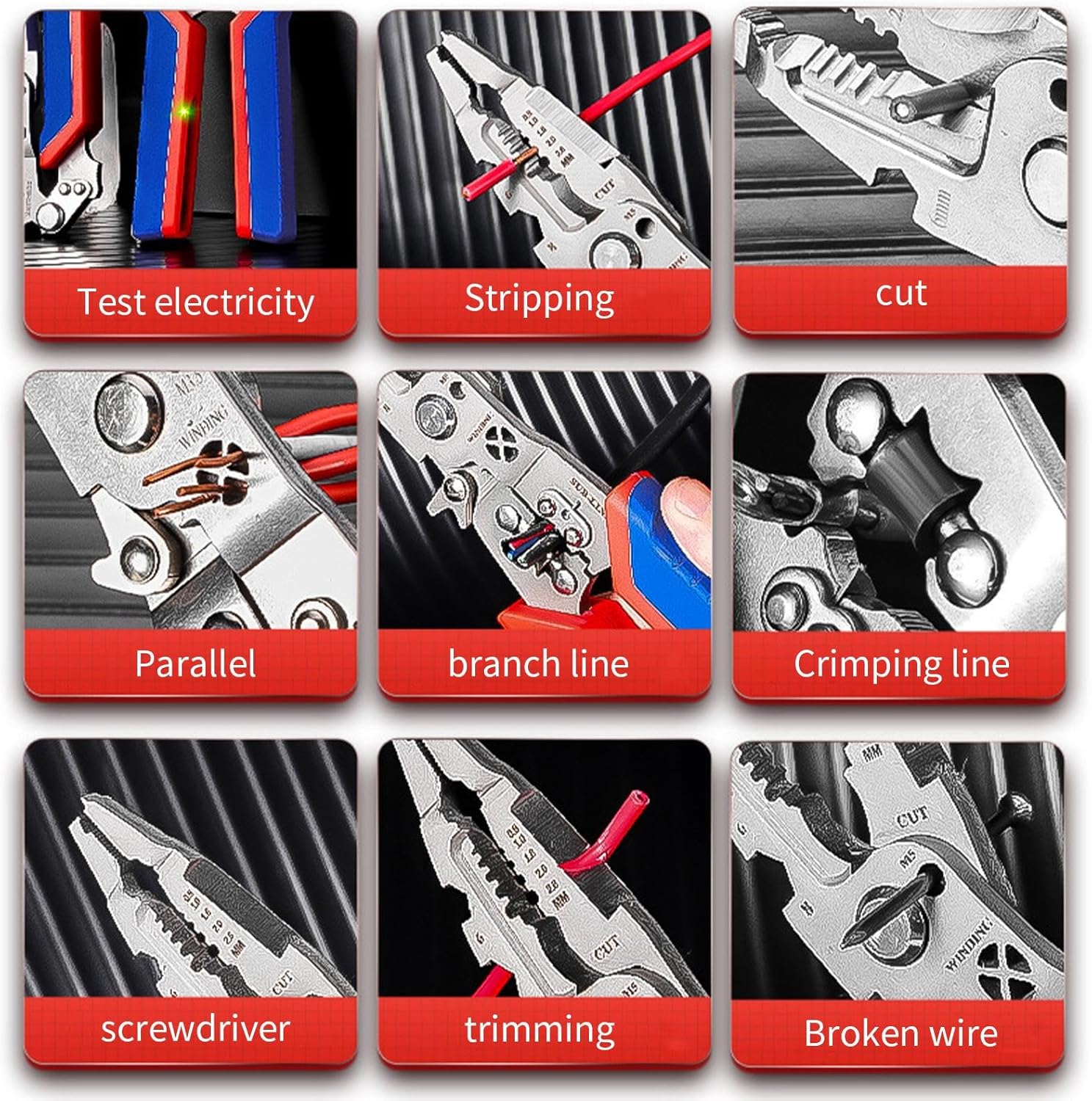Multi-Function Design: combines cutting stripping and crimping capabilities allowing users to handle various electrical tasks efficiently from automotive wiring to household repairs supporting both hobbyist and professional projects