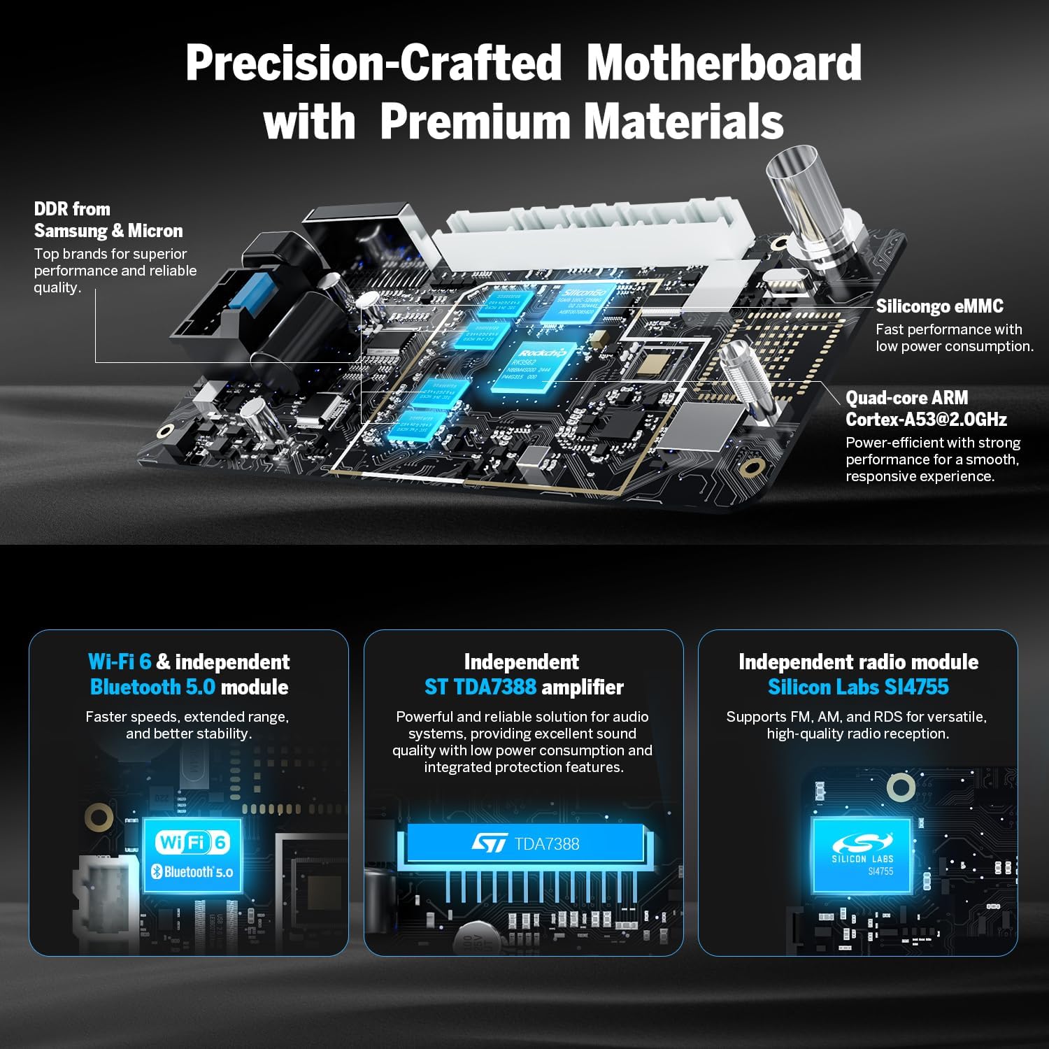 【GMA13 upgraded Real Android 14 System】Built-in with the latest Android 14 , paired with a cutting-edge Rockchip processor for superior performance and energy efficiency, GMX7 is an upgraded version of GMA13 outperforms conventional other car stereo with 8-core processors. Eonon offers convenient online firmware updates, you don’t need a USB stick to upgrade.3 USB ports for convenient flash drive use.
