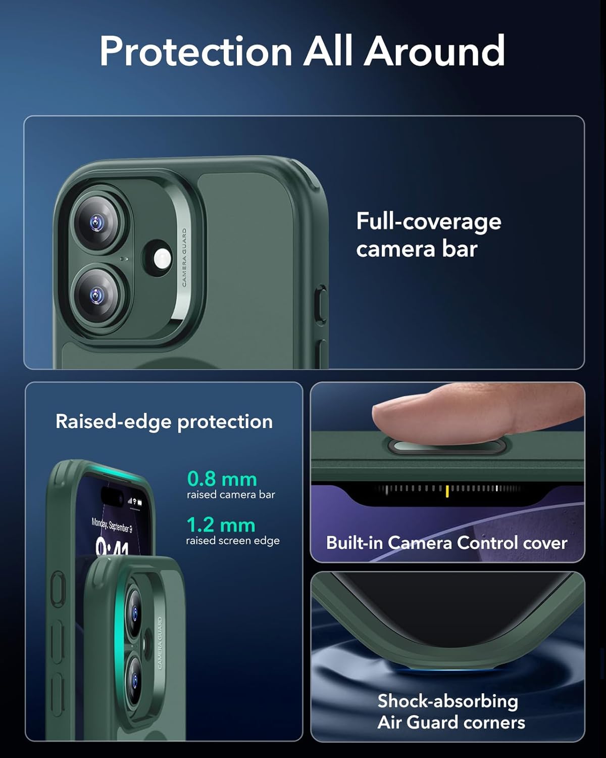 Military-Grade Drop Protection: rigorously tested to ensure total protection on all sides, with specially designed Air Guard corners that absorb shock