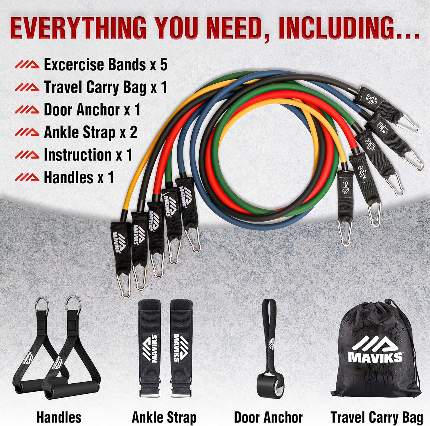 Product Description for Maviks Resistance Bands Pack of 5: Elevate your workouts with the Maviks Resistance Bands Pack of 5, a versatile set designed to meet all your fitness needs. This pack includes five resistance bands with varying levels of resistance, perfect for strength training, rehabilitation, and flexibility exercises. Whether you’re at home, in the gym, or on the go, these workout bands are compact and easy to carry, allowing for a full-body workout wherever you are. The set includes hip bands, mini bands, looped resistance bands, and flat resistance bands, offering a wide range of exercises targeting different muscle groups. Made from durable, high-quality materials, these resistance rubber exercise bands are built to last through intense workouts. Perfect for all fitness levels, from beginners to advanced users, the Maviks bands are ideal for strength training, physical therapy, and even warm-up routines. The adjustable resistance bands help you progress at your own pace, while the wide and large resistance bands accommodate different body sizes and workout preferences. With additional features like power bands, knee bands for working out, and shoulder resistance bands, this set ensures you have the right tool for every exercise. Whether you’re focusing on legs, arms, or core, these bands provide the perfect resistance level for effective training. Ideal for women, men, kids, and seniors, the Maviks Resistance Bands Pack of 5 offers a complete workout solution. Compact and portable, these rubber stretch bands are easy to pack, making them great for travel. Achieve your fitness goals with Maviks—your go-to for reliable, versatile, and durable resistance bands.