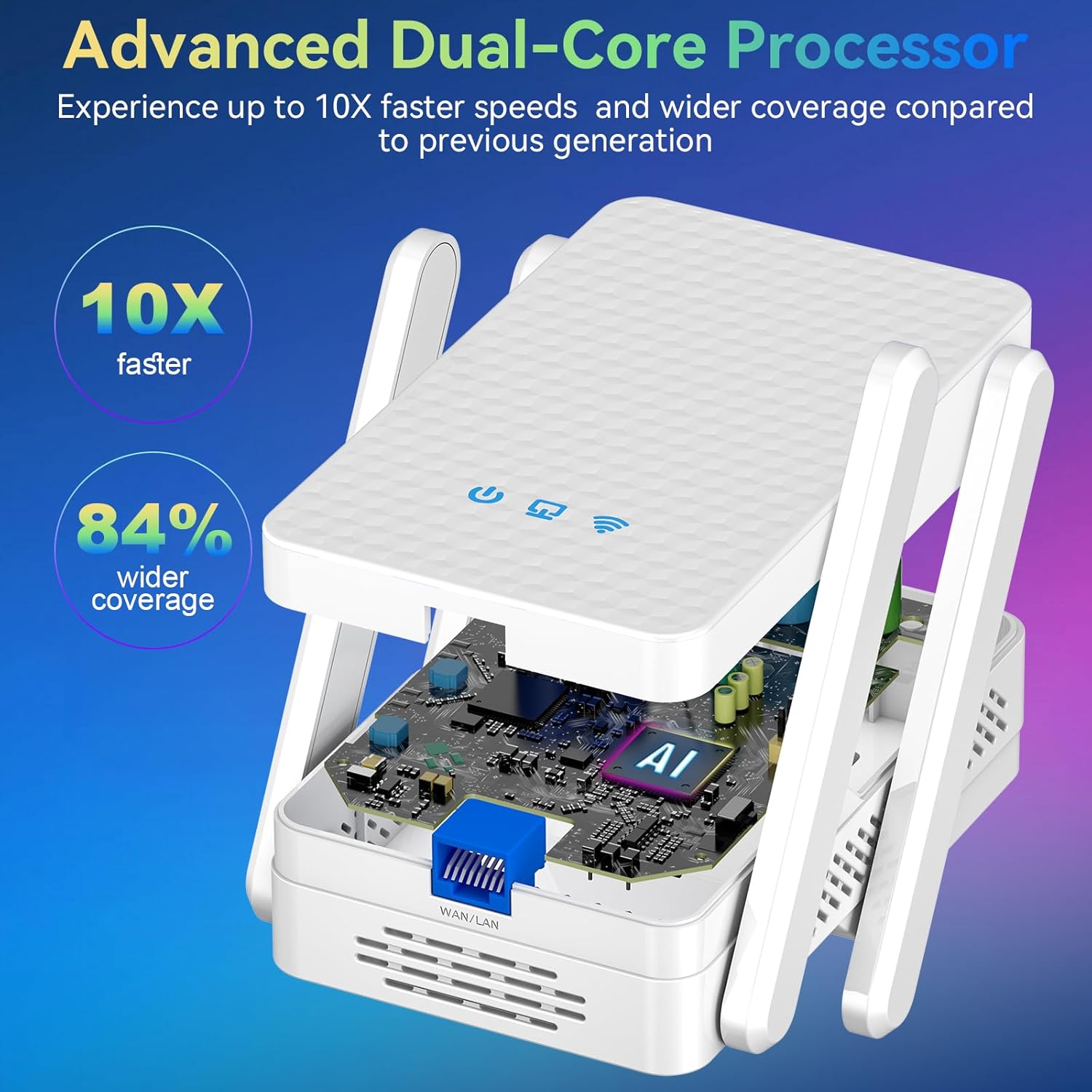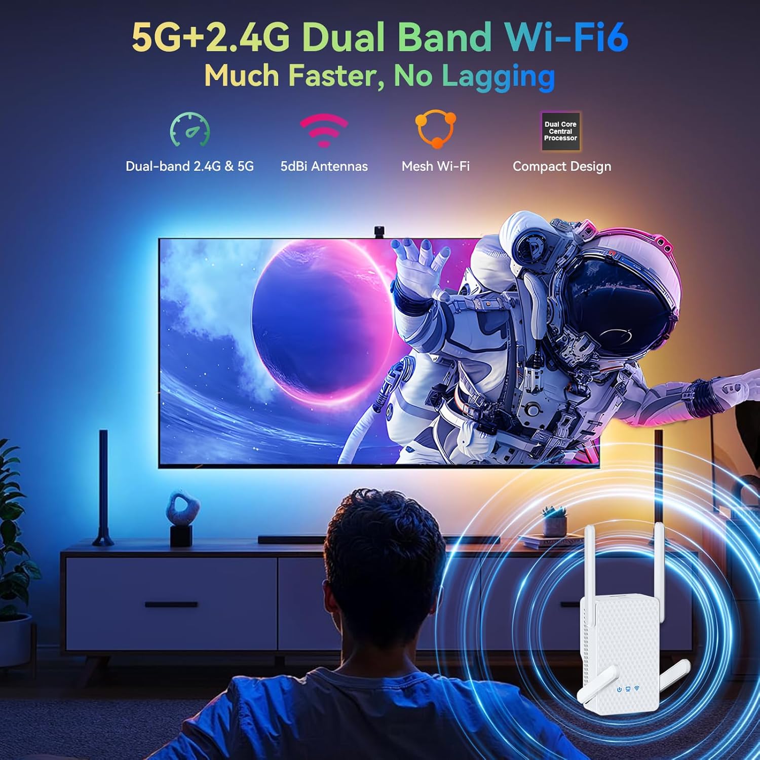 The AX3000 WiFi 6 Extender delivers blazing-fast speeds with a 2400Mbps 5GHz band and a 600Mbps 2.4GHz band, perfect for 4K streaming, competitive gaming.