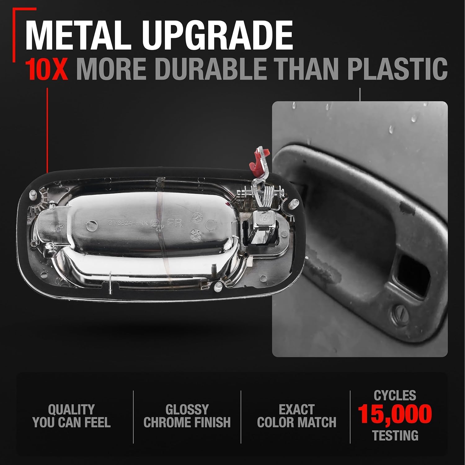 DURABLE MATERIAL: Made from upgraded metal handle and plastic housing, the handle’s all chrome finish ensures long-term durability and matches your vehicle’s exterior.