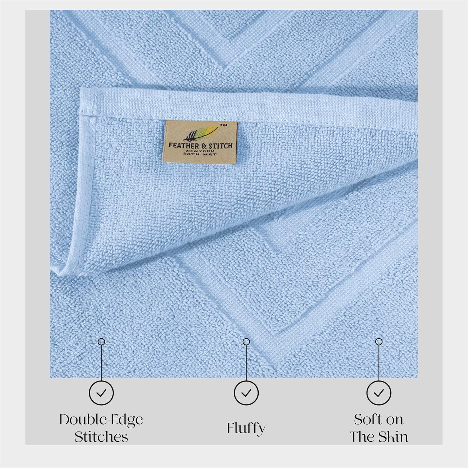 13 reviews for Feather & Stitch 2 Piece Towel Like Bath Mats (30×21 Inch) 100% Cotton Terry Mat for Hotel, Spa, Shower Floor Mats [NOT A Bathroom Rug], Soft Absorbent Washable Mats – Sky Blue