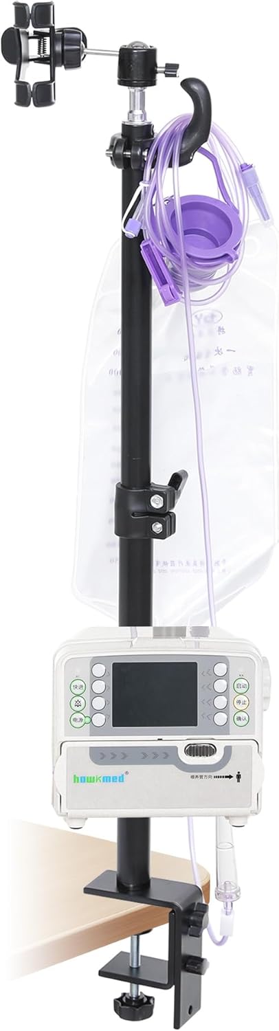 Premium quality: The feeding tube stand is made of durable metal materials and consists of a base, an adjustable pole, and a hook or clamp to secure the feeding tube. The pole is adjustable in height and easy to clean with smooth surfaces that can be wiped down with disinfectant.