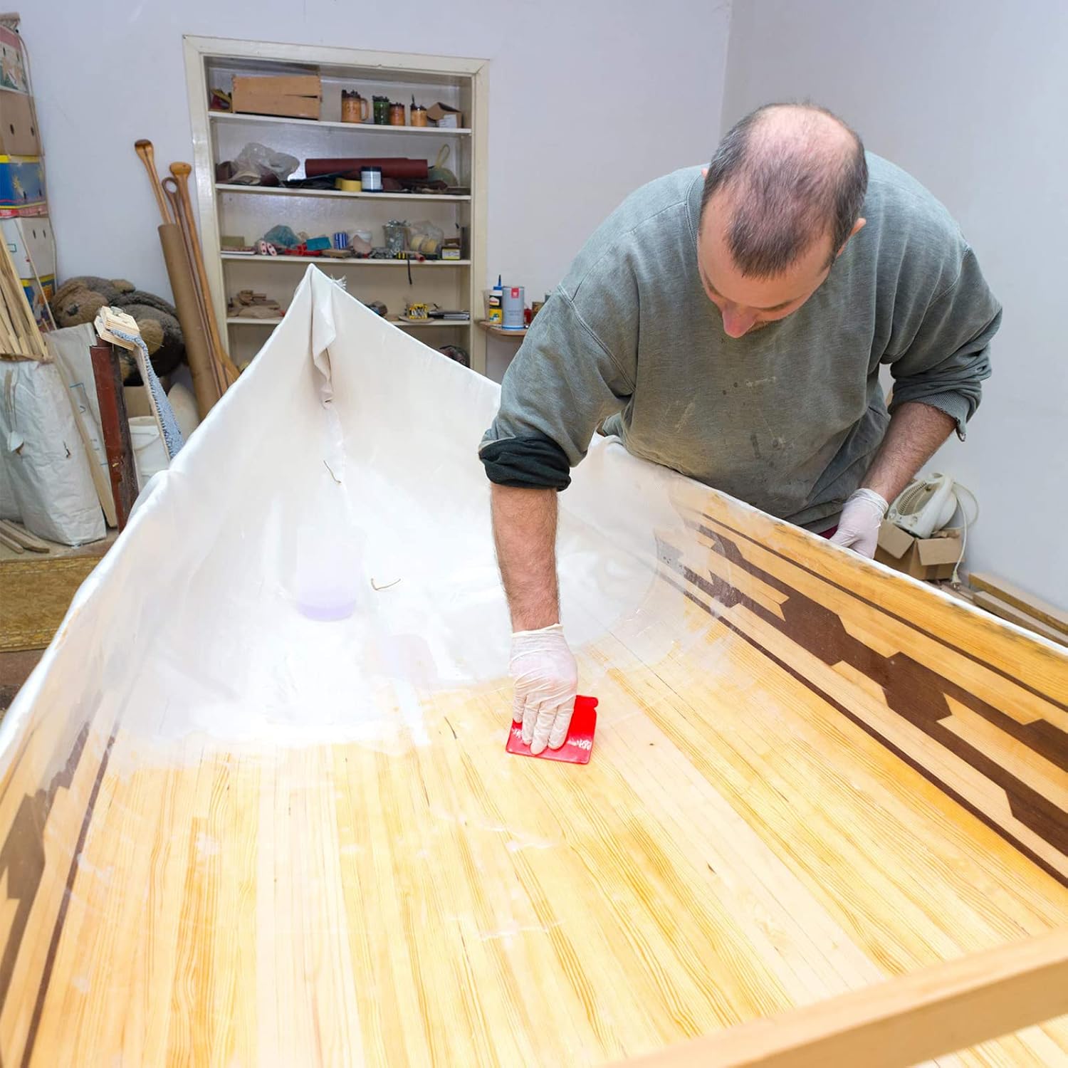A bit tough to work with. If you’ve not laminated with polyester or epoxy resin before, this could be difficult to get a good result due to the stiffness of the product. It will test your abilities, but makes a good strong, weatherproof lamination.