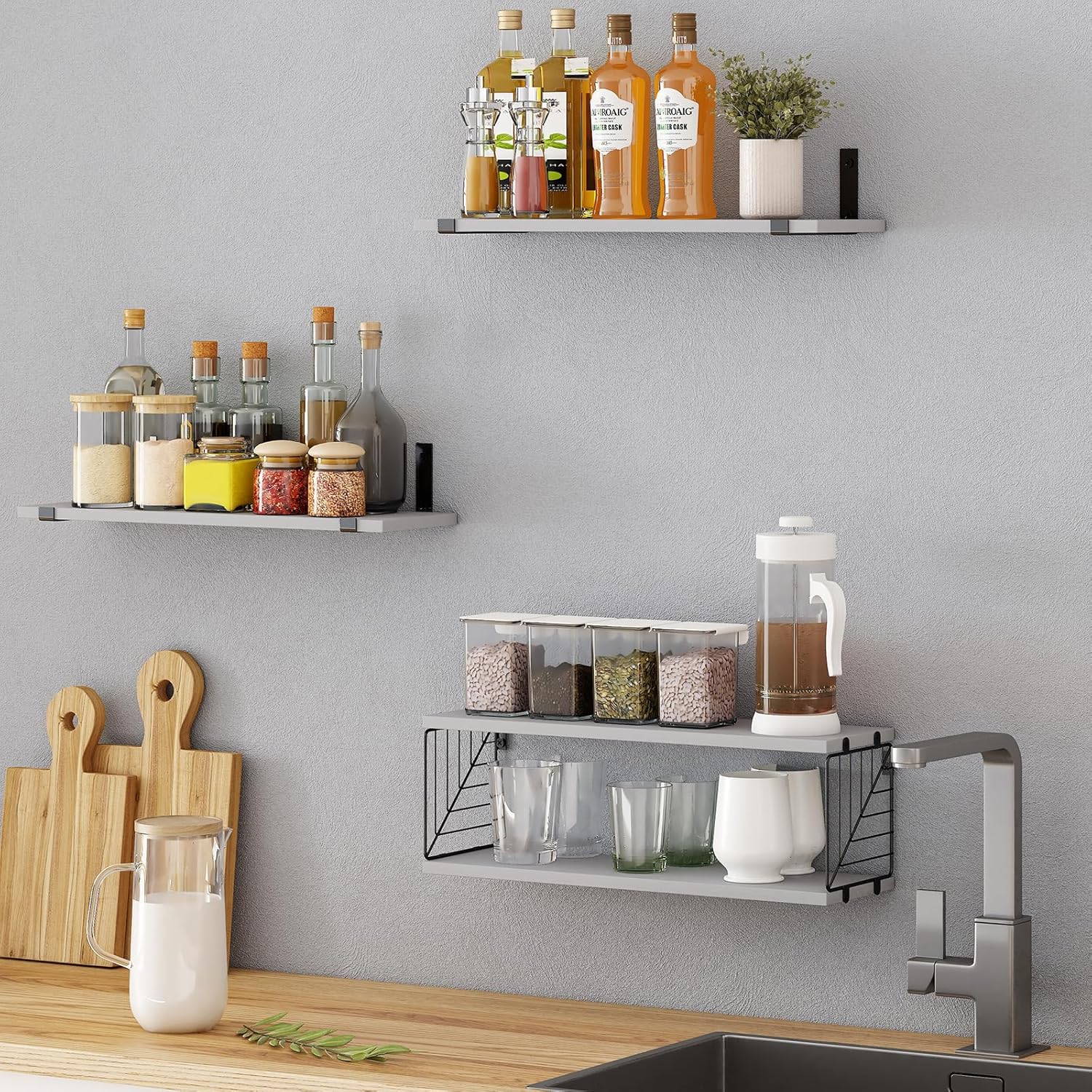 [Easy Installation]- With the provided installation manual, these shelves can be effortlessly installed within minutes. When firmly mounted on the wall, they boast a weight capacity of up to 40 lbs.