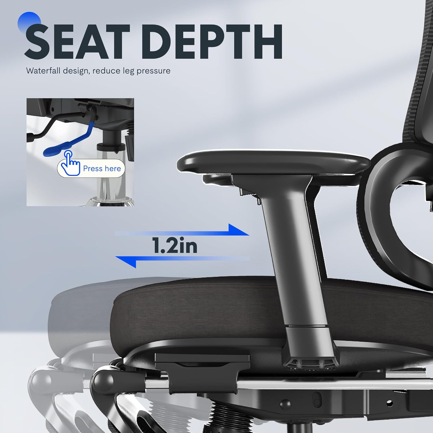 Customizable Comfort: Featuring adjustable seat depth (17″-20″), height (20.1″-22.4″), and tilt functions to ensure a perfect fit for users between 5’1″ and 6’2″.