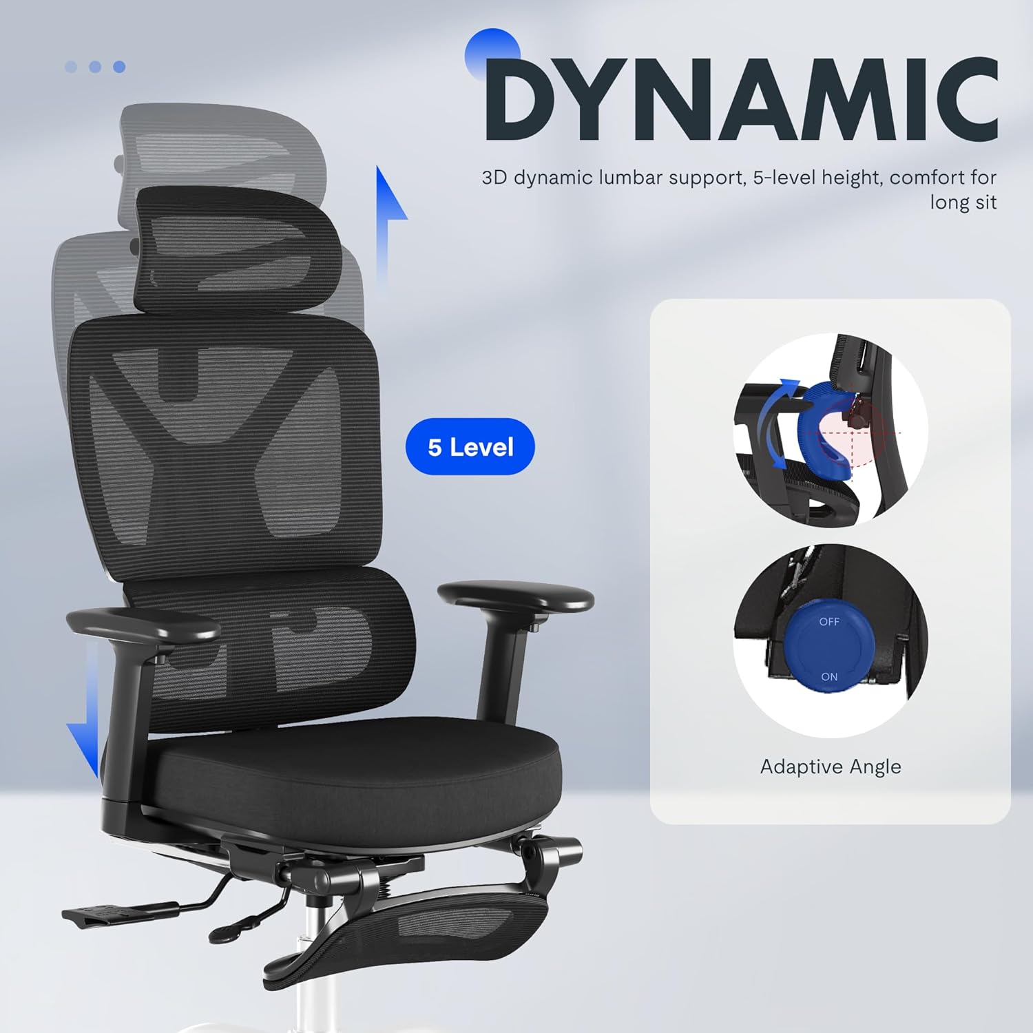 FLEXISPOT ErgoX Premium Ergonomic Office Chair with Footrest- Adjustable 3D Armrests, Dynamic Lumbar Support, Recline & Tilt Function, Mesh Seat, for Home & Office Use,Foam Black