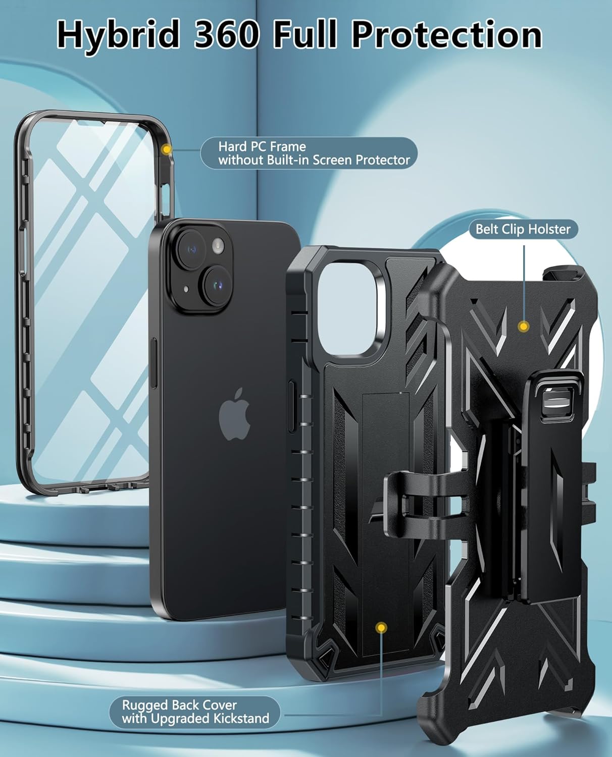 FNTCASE ONLY for iPhone 14/13 : Include iPhone 14/13 Case with Built-in Kickstand *1, 360°Rotatable Belt-Clip *1, Phone Frame with Built-in Screen Protector *1