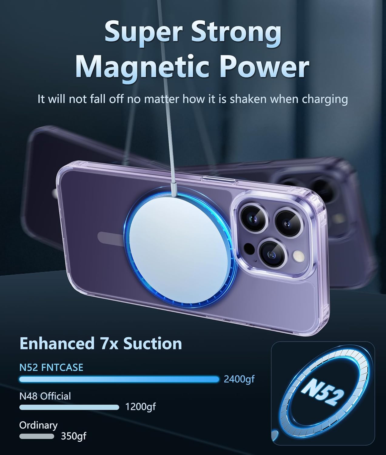 Strong magnetic charging: This iPhone 13/14 Pro case has a built-in strong magnet that fits magnetic chargers and other Qi wireless chargers. The magnets are so strong that you simply snap the charger in place while charging, making wireless charging faster and safer than ever. The case is compatible with all magnetic accessories such as mobile power, wireless chargers, wallets, car mounts and wireless charging stations