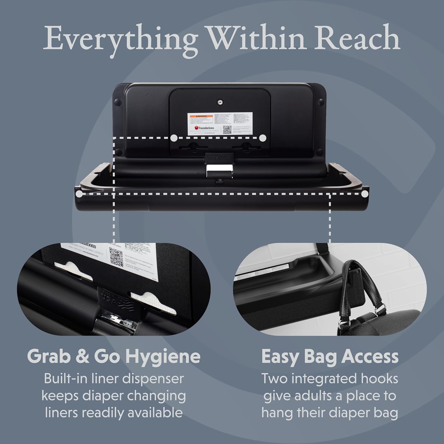 8 reviews for Foundations Ultra Horizontal Wall Mounted Baby Diaper Changing Station, Oversized Changing Surface, Plastic with Heavy Duty Stainless Steel Hinge – Black (200-EH-02)