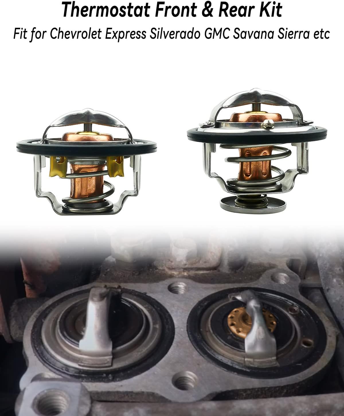 Fitment: The front and rear thermostat kit fits for Chevrolet Express 2500 3500 2003-2016, fits for Chevrolet Silverado 2500 3500 2001-2017, fits for GMC Savana 2500 3500 2003-2017, fits for GMC Sierra 2500 3500 2001-2017