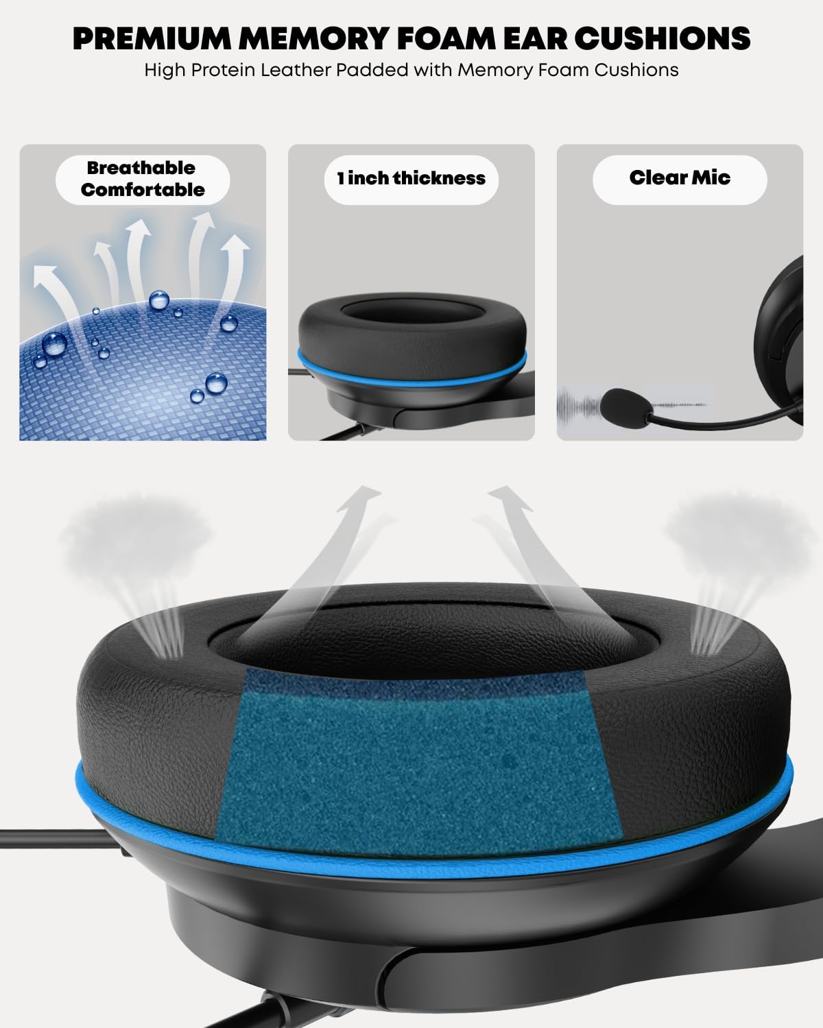 【Space-Saving Foldable Design】: V7900 Gaming Headsets for Xbox Series X|S, Xbox One, PS5, PS4, PC and Other Devices with a 3.5mm Audio Jack, feature a compact design that takes up less space in your gaming area. Equipped with a scrolling volume adjuster, the headset offers easy adjust, simply scroll to adjust volume. Additionally, a one-touch mute button enables quick mic muting in unforeseen situations while still allowing you to listen to game sounds and teammate instructions.Comfortable and breathable permeability protein over-ear pads perfectly on your head.