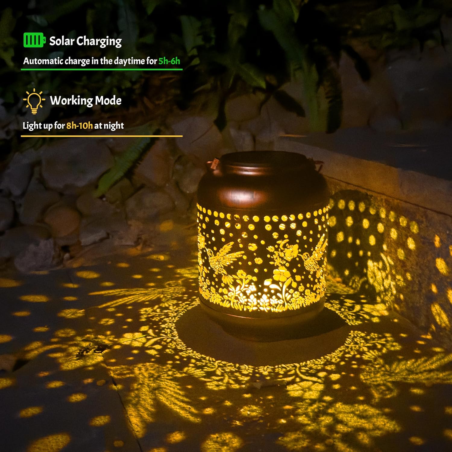 HANGING OR STANDING: You can hang the outdoor solar lanterns on your porch, tree, pergola, or place them on a tabletop, lawn, or ledge. They present vivid and beautiful patterns on tables or grounds, making your patio stand out. They are great for gardens, patios, backyards, pathways, walkways, yards, balconies, and home decor.