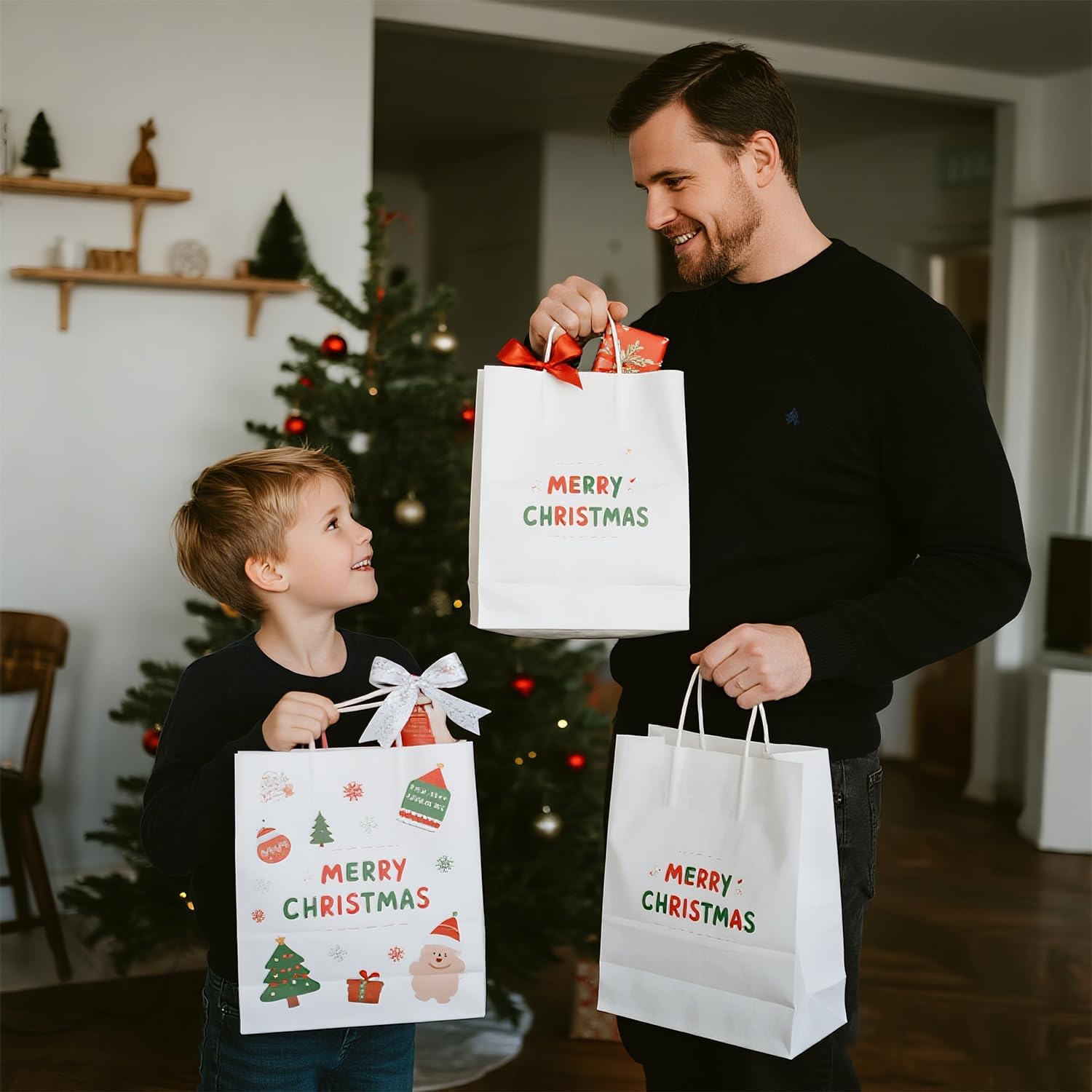 🎁【Perfect for Gifting & Celebrations】These medium white paper bags with handles are ideal for gift-giving, party favors, and holiday treats. Their clean and classic look complements any occasion — from birthdays and weddings to baby showers and corporate events.