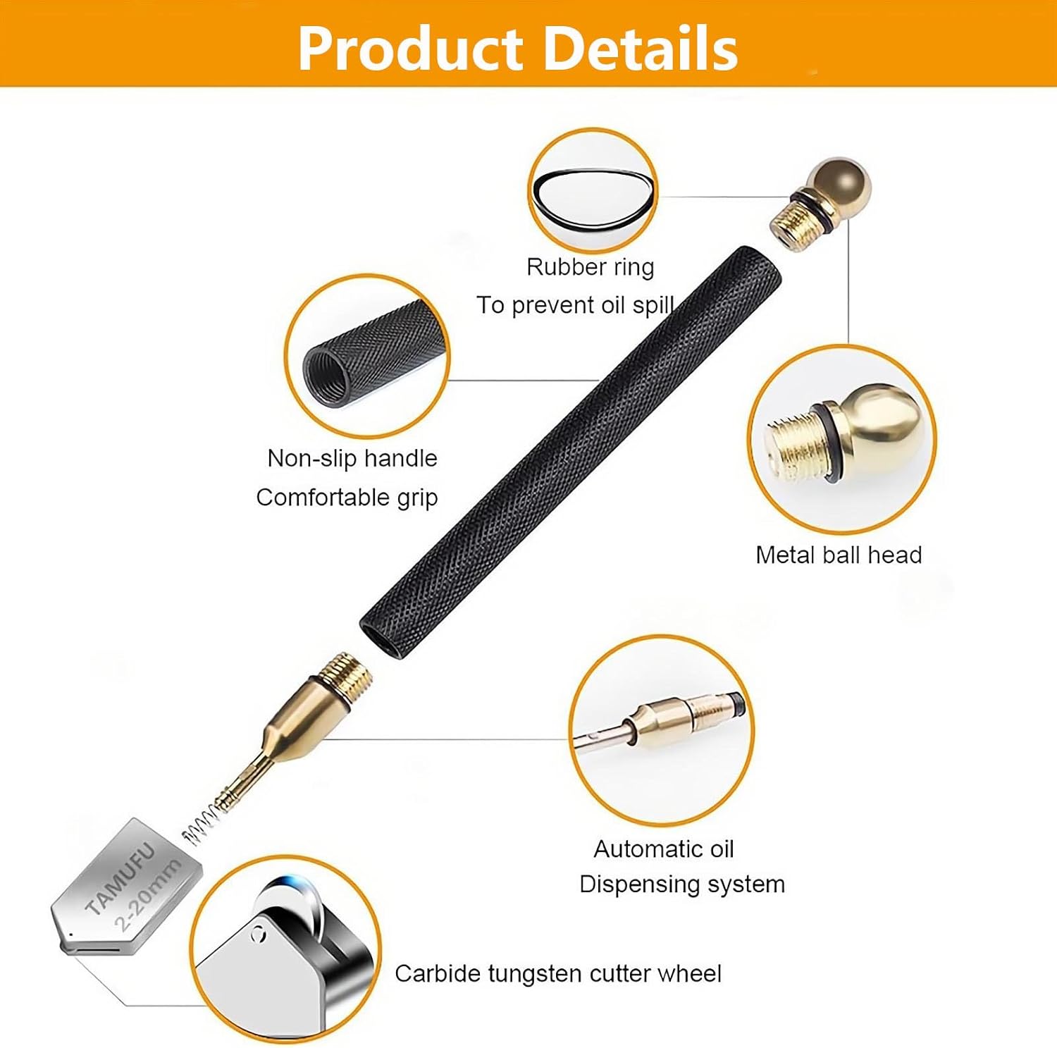 [Automatic Oil Feed for Smooth Cutting]: This glass cutting tool features an automatic oil feed, ensuring smooth, precise cuts on glass, mirrors, and mosaics. Whether you’re using a glass cutter for mirror or stained glass, this tool enhances accuracy and reduces effort
