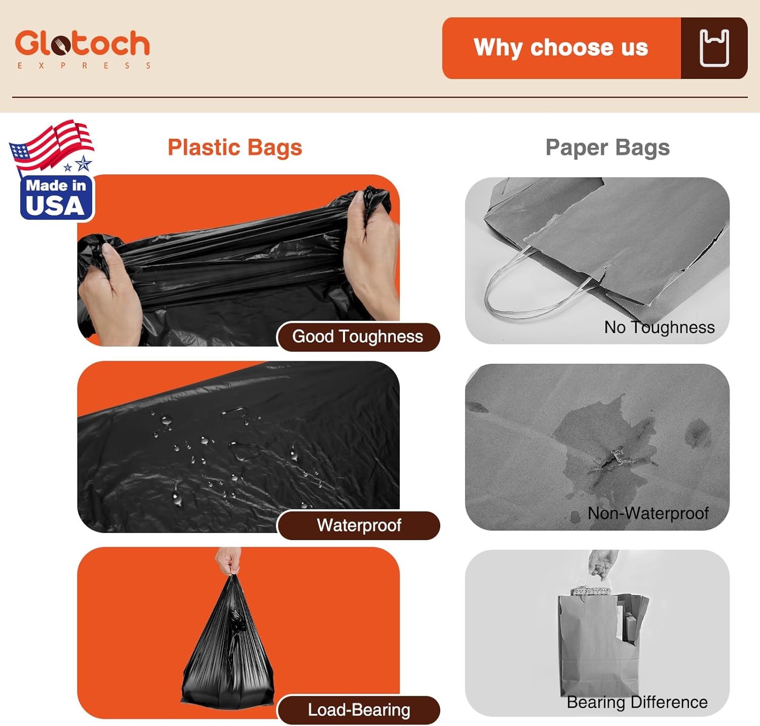 Designed and Made in America: Black Plastic Bags are esigned and made in USA, ensuring quality and compliance with strict environmental standards. By supporting local industries, we provide high-quality products to your customers, making them an ideal choice for small businesses and boutique owners